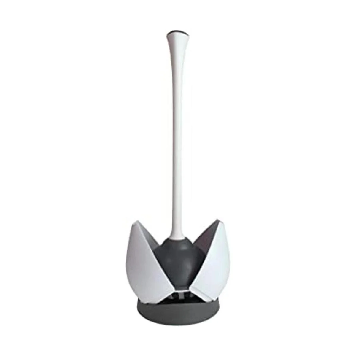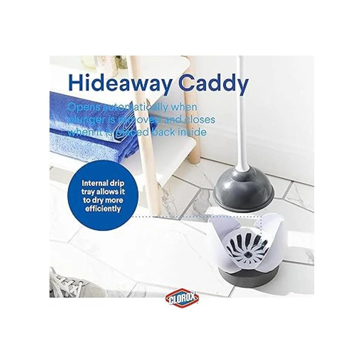 HIDEAWAY CADDY: Opens automatically when the plunger is removed and closes when it is placed back inside, and the internal drip tray allows it to dry more efficiently after use and keeps floors clean