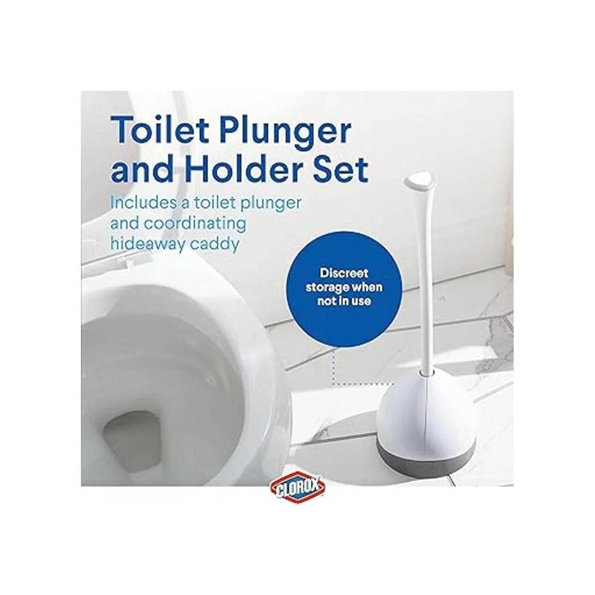 TOILET PLUNGER AND HOLDER SET: Includes a toilet plunger as well as a coordinating hideaway caddy for convenient access and discreet storage when not in use