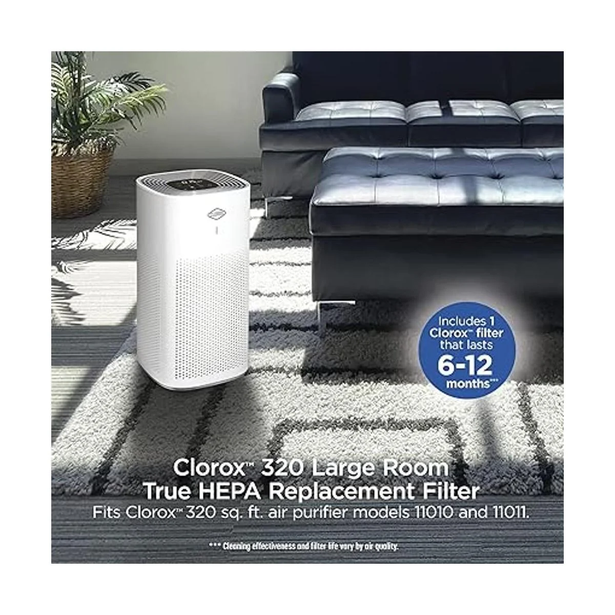 Clorox Purificador de aire para habitación grande, filtro de repuesto HEPA verdadero, capacidad de 1,500 pies cuadrados, elimina el 99.97 de alérgenos de hasta 0.1 micras, compatible con 11010 y 11011, 1 unidad 12010