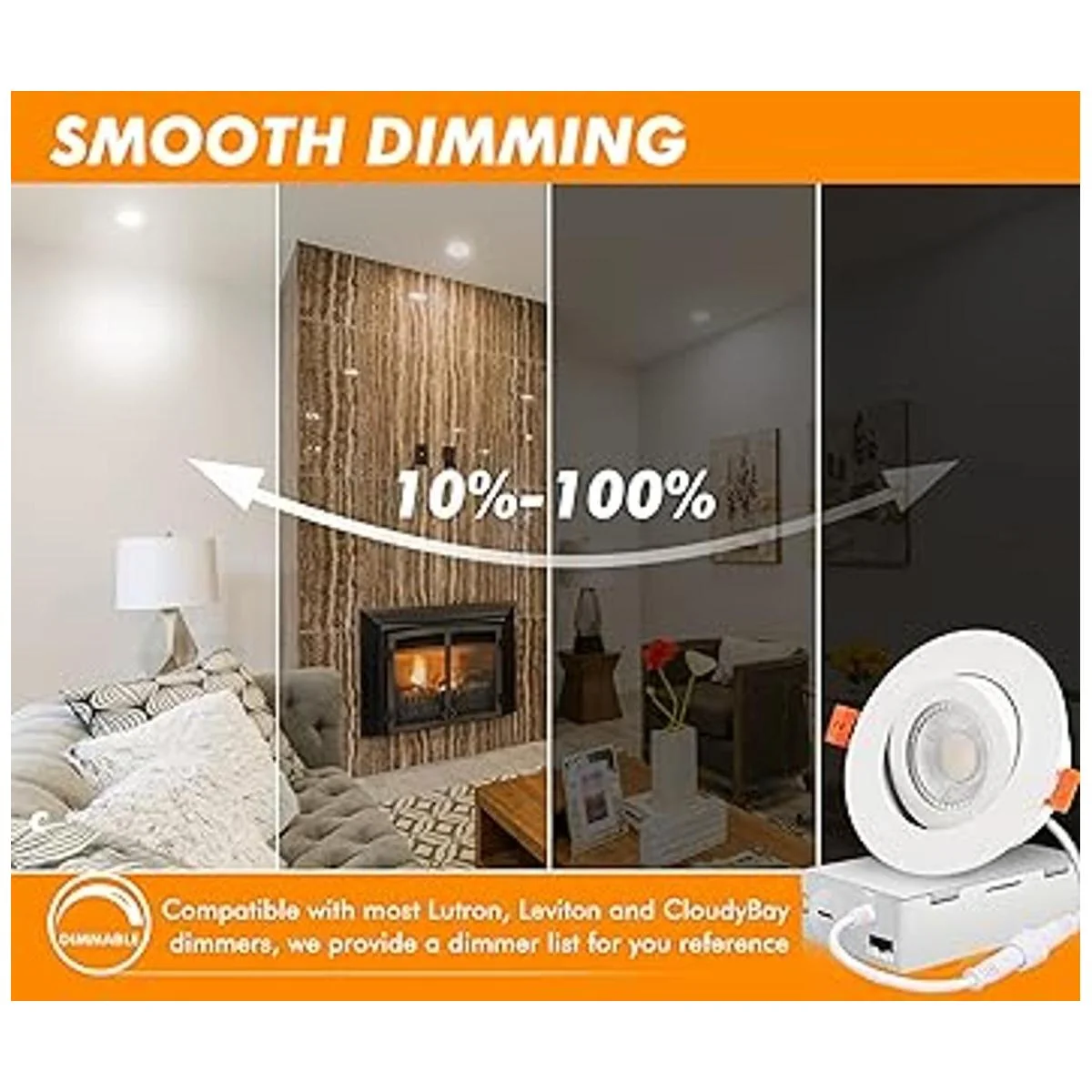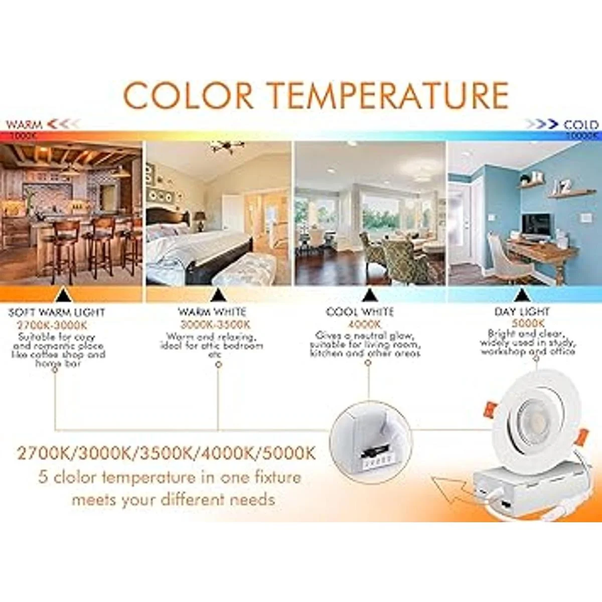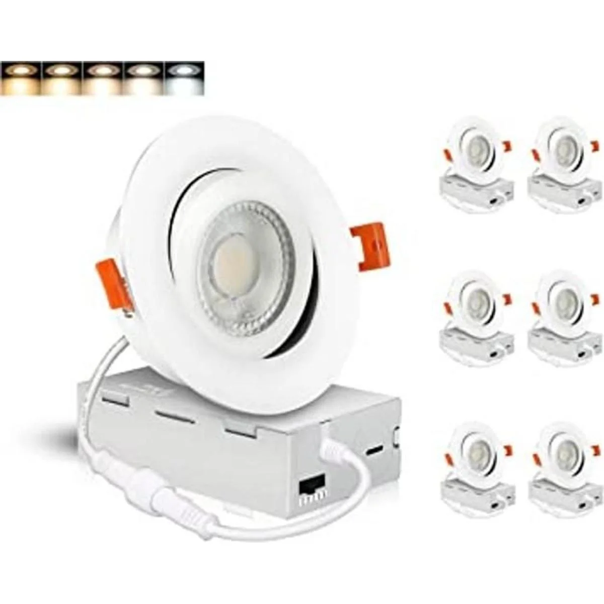 Cloudy Bay Eyeball 5 colores 4 pulgadas Gimbal LED empotrable con caja de conexiones, clasificación IC, 9.5 W CRI90 2700K3000K3500K4000K5000K temperatura seleccionable, downlight regulable, versión actualizada, paquete de 6