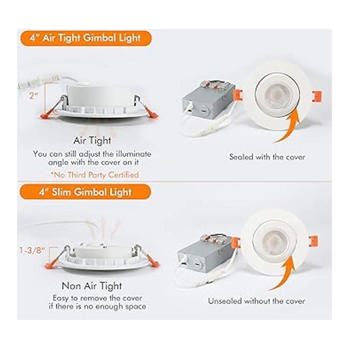 Fácil instalación: diseñado para una fácil remodelación, remodelación o nueva instalación de construcción. No requiere cajas de conexiones o latas. El tamaño recomendado del agujero de corte en la plantilla 1:1 es de 43/16 pulgadas, también es compatible con remodelación o carcasa de nueva construcción con agujeros de 41/2 pulgadas, ahorra tiempo si ya hay agujeros de 41/2 pulgadas.