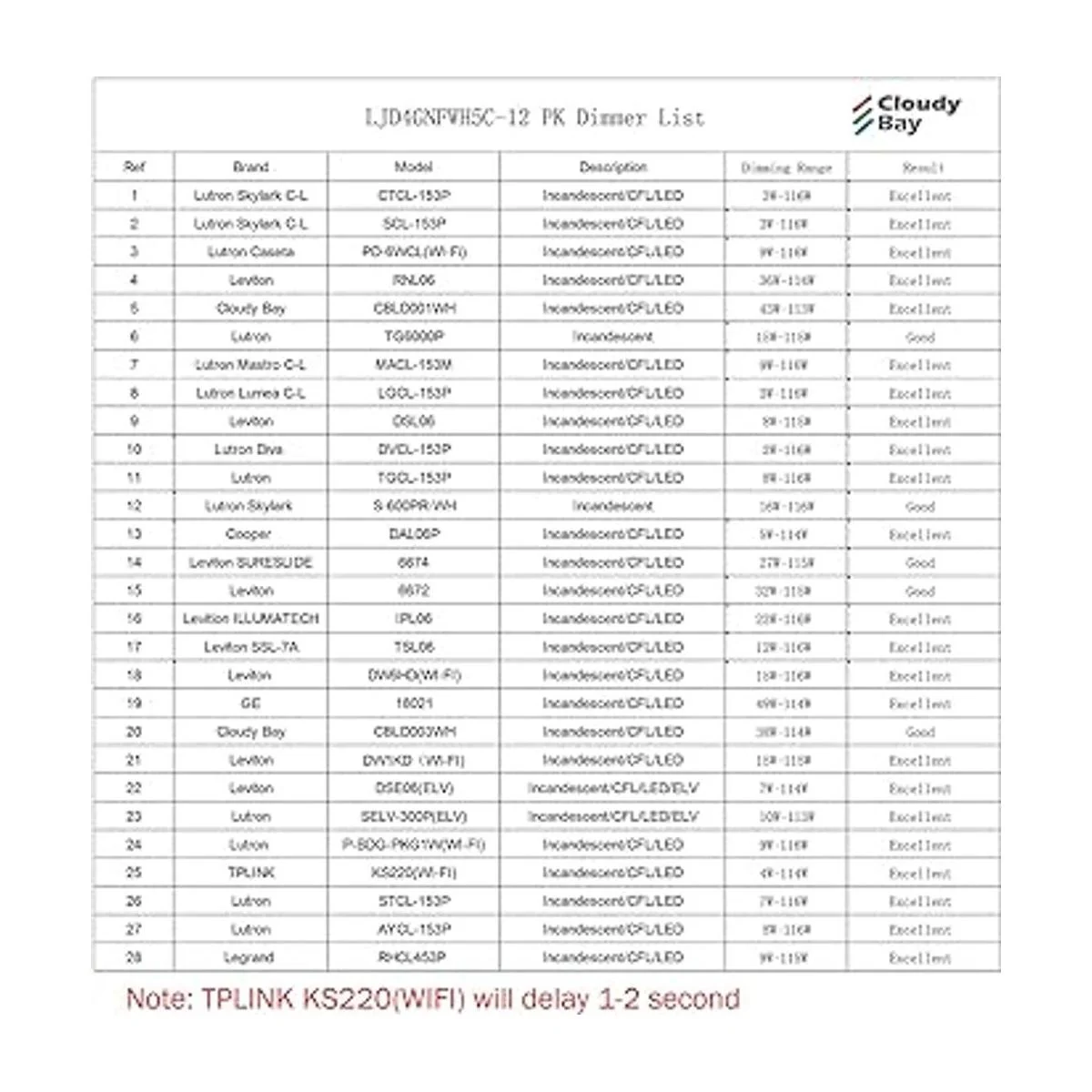 Luz LED regulable: funciona con la mayoría de reguladores LED, ajusta de forma flexible el brillo del 10 al 100. Proporcionamos una lista de atenuación para tu referencia. Se puede ajustar a la luz más baja sin parpadeo ni ruido