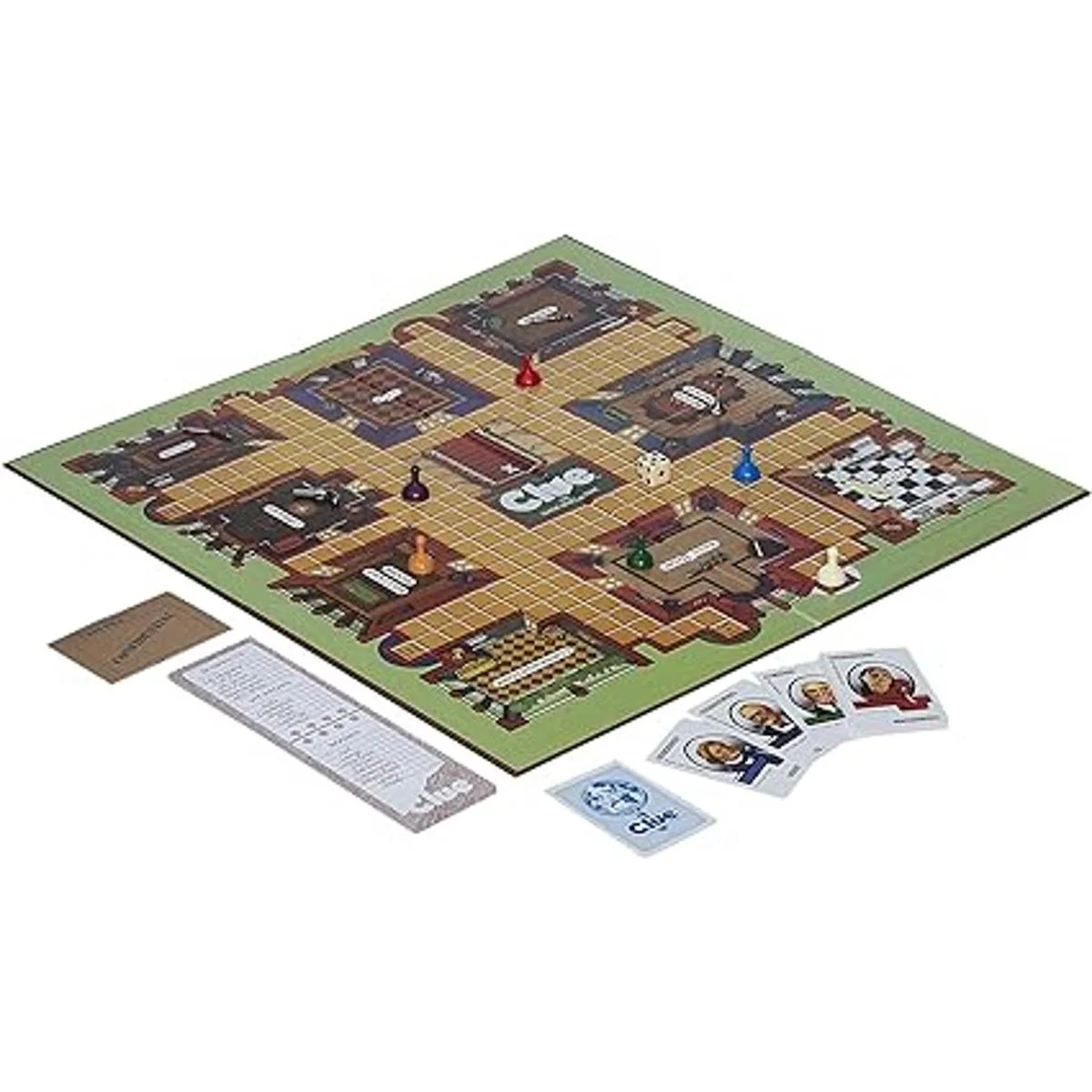 Incluye tamaño completo tablero de juego basado en la 1986 Edition, baraja con gráficos de estilo retro, 6 fichas de madera clásico, retro, clásico detective de Die de armas y notas y solución sobre, y las instrucciones