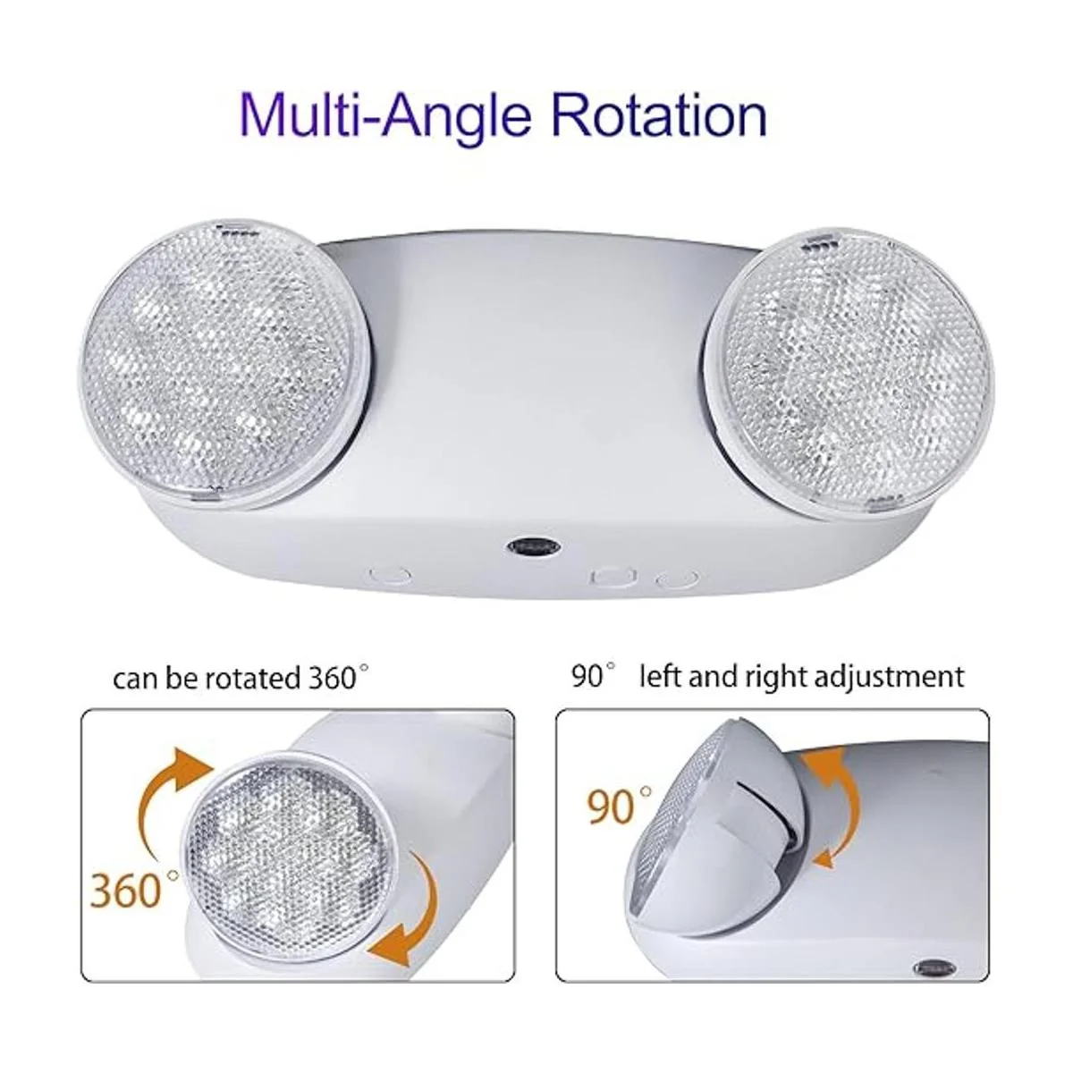 Estándar de Estados Unidos La luz de emergencia está hecha de carcasa de ABS termoplástico moldeado por inyección, retardante de llama UL94V0, por lo que la luz de emergencia puede seguir funcionando en caso de incendio o terremoto. Cada cabezal de lámpara ajustable está equipado con luces LED superbrillantes para iluminar cada esquina en la oscuridad.