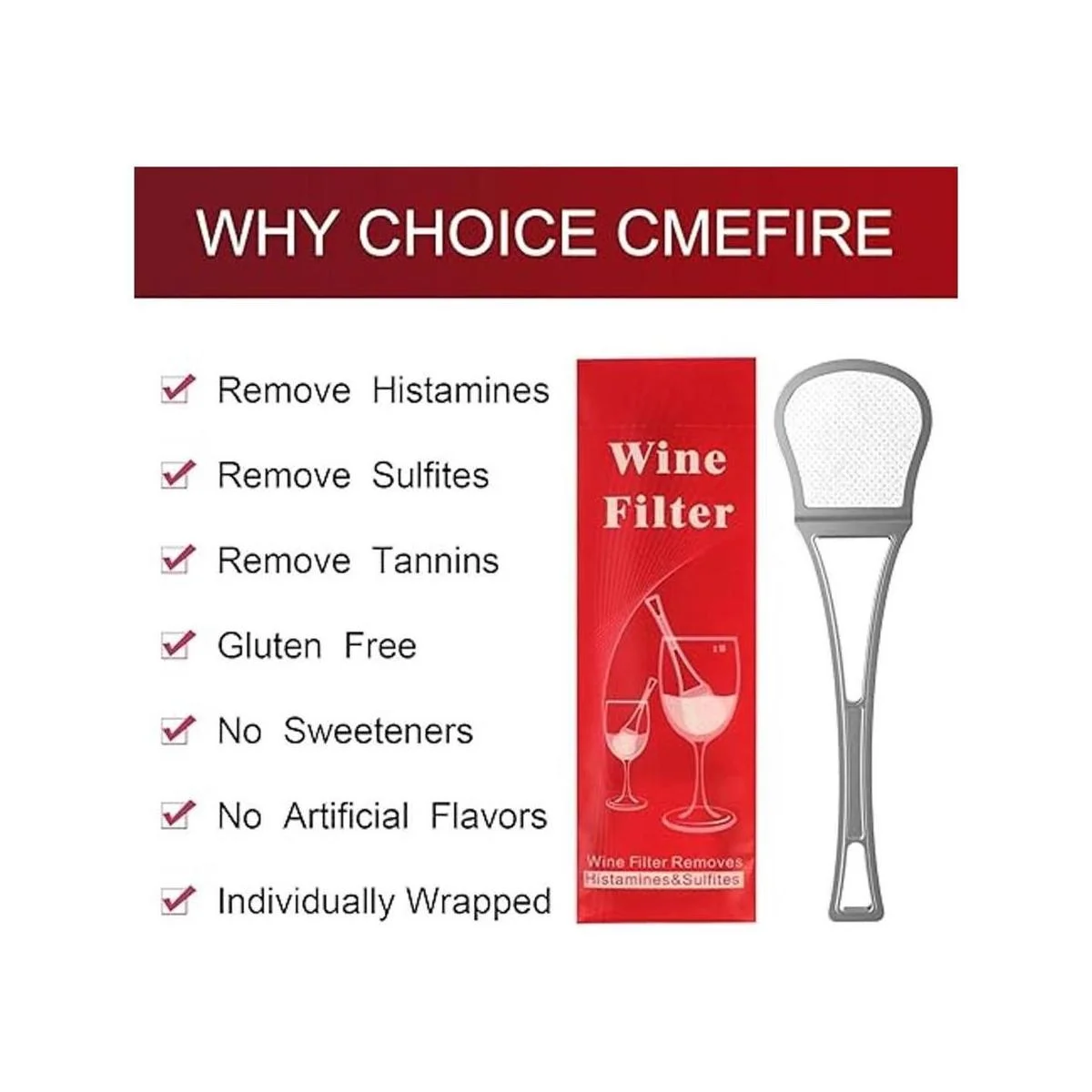 Reduce los efectos secundarios: la varita de filtro de vino Cmefire, elimina el sulfito, la histamina y los taninos, aliviando así todos los efectos secundarios más comunes: dolor de cabeza, náuseas y reduce las alergias al vino y resacas al día siguiente.