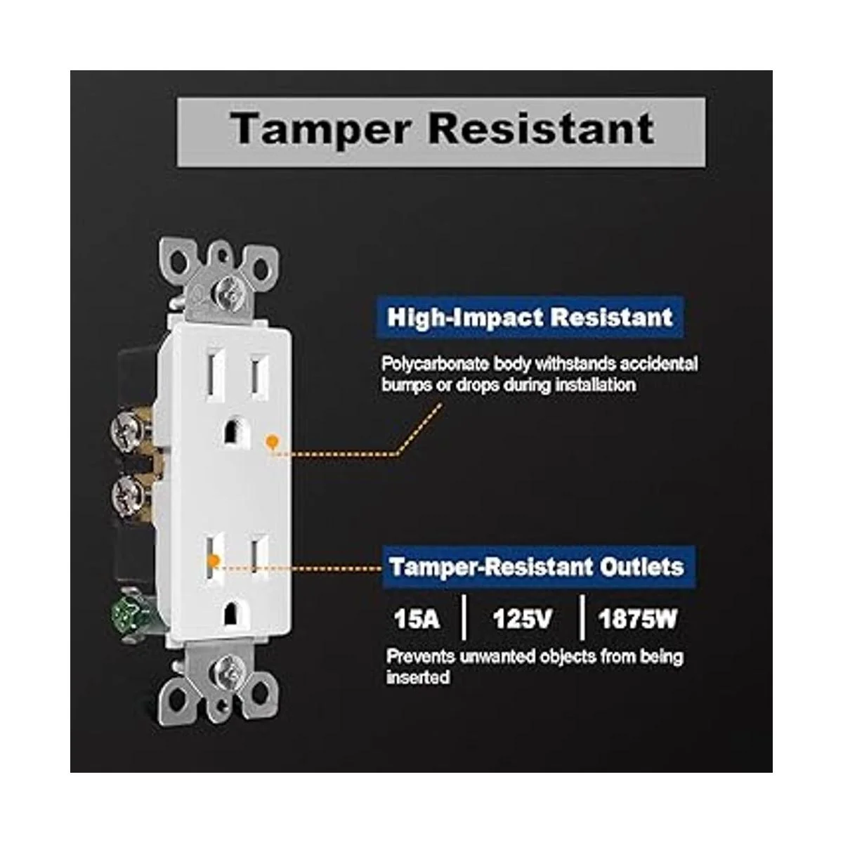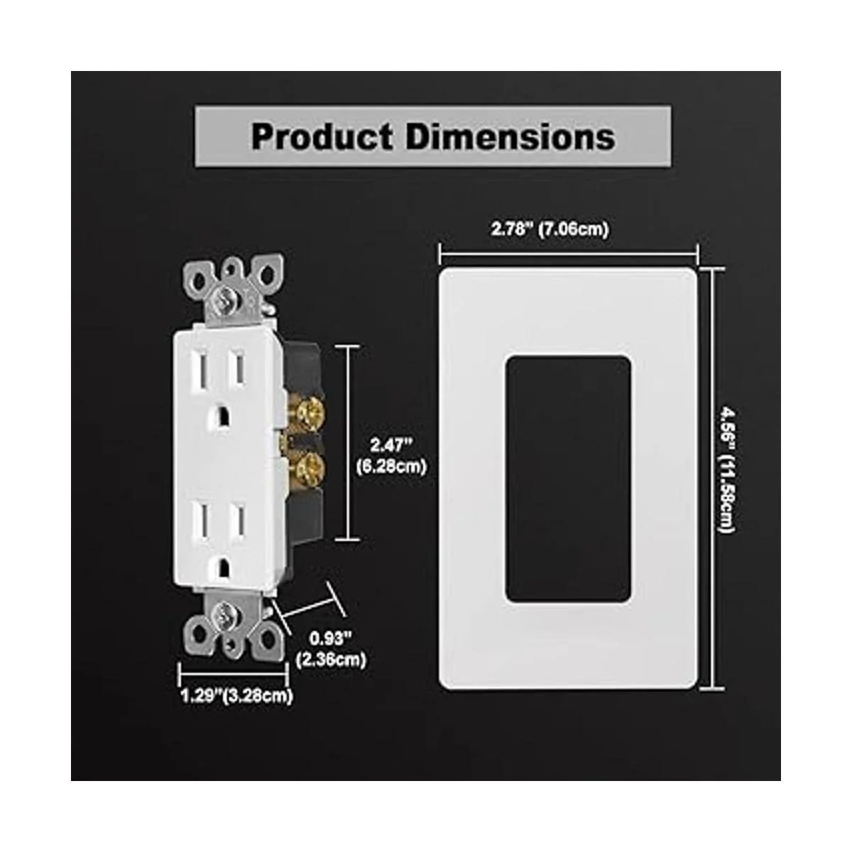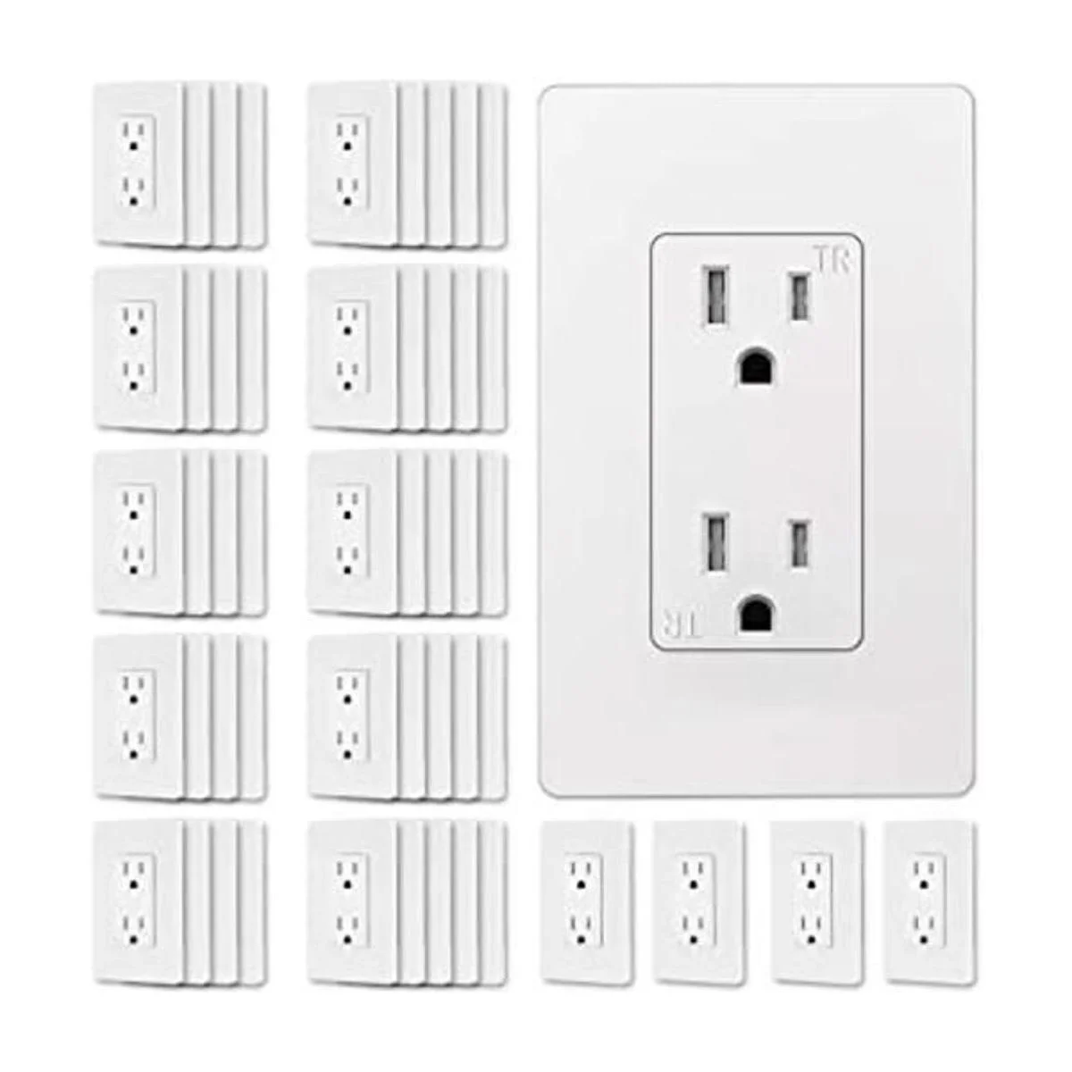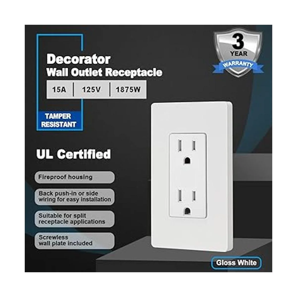 CML Decor Toma de corriente de retáculo de decoración, resistente a manipulaciones, 15 A125 V, placa de pared sin tornillos incluida, 3 años de garantía, certificación UL, color blanco