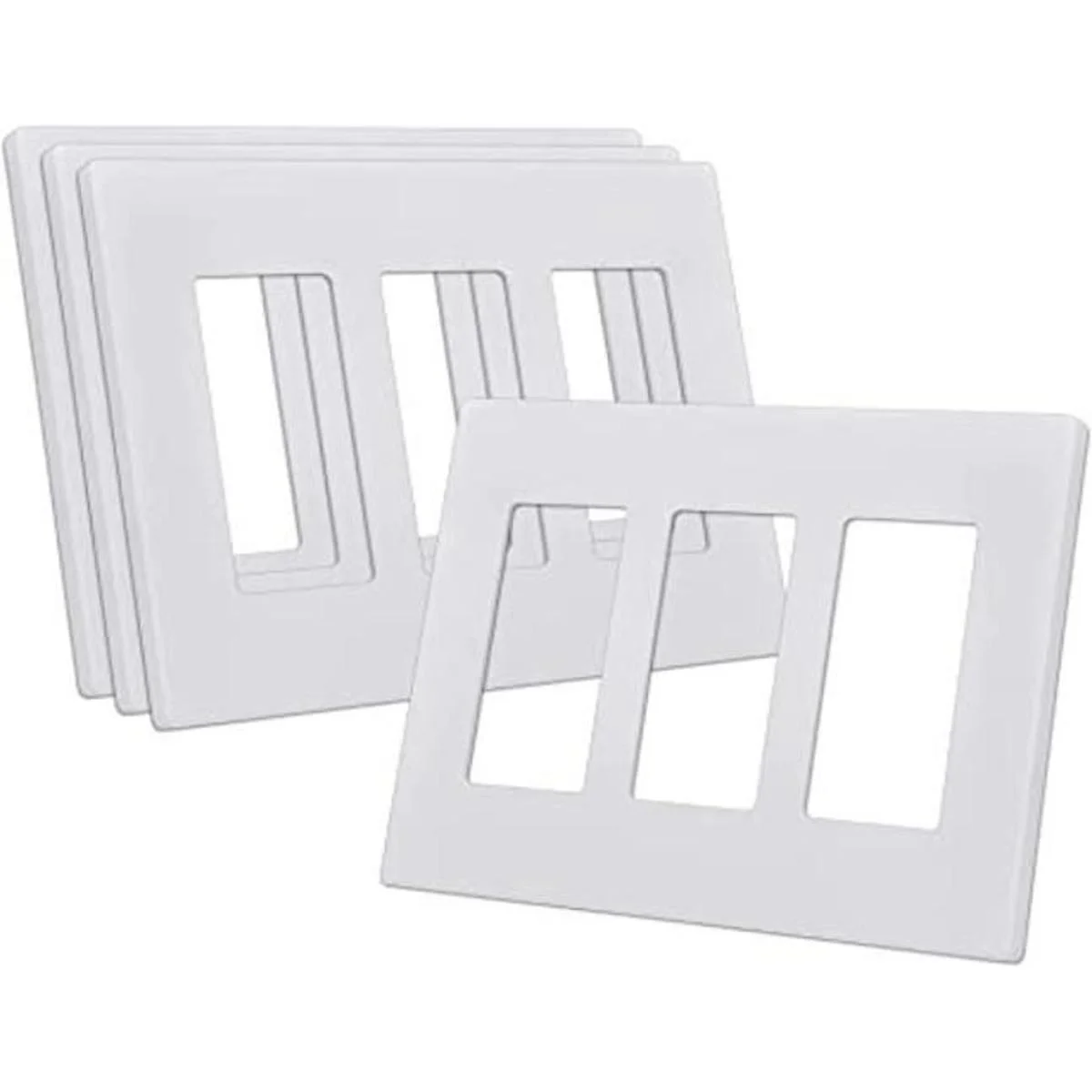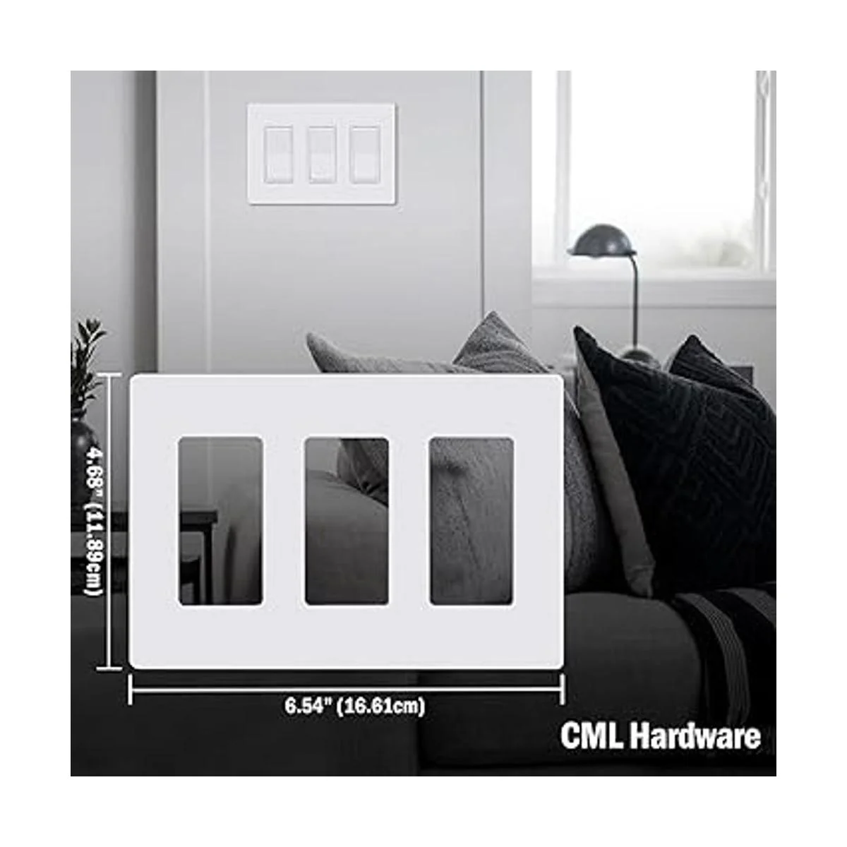 CML Placas de pared decoradoras sin tornillos, cubierta de salida segura de pared de 3 bandas, paquete de 4 placas de interruptor de tornillo ocultas, tamaño estándar de 4.68 x 6.54 pulgadas, resistente a los impactos, color blanco