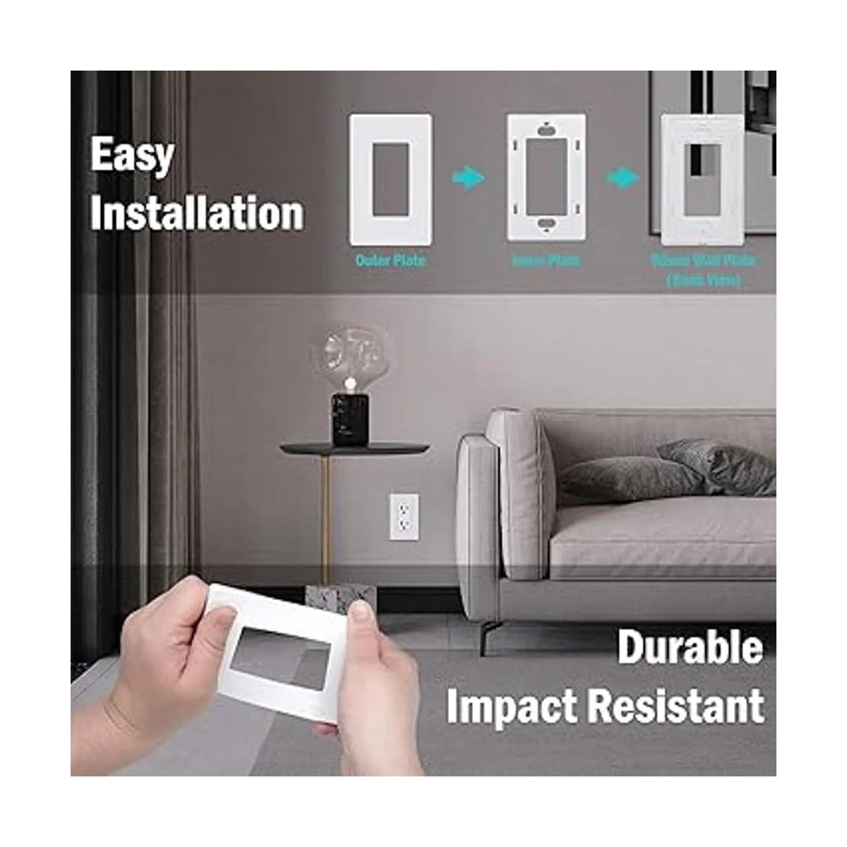 El aspecto suave y brillante de la placa de pared sin tornillos se ha convertido en el estándar del diseño interior moderno. Uso con cualquier interruptor de estilo decorativo, regulador, tomacorriente, GFCI, salida USB, etc. Tamaño estándar 4.68 x 6.54 pulgadas