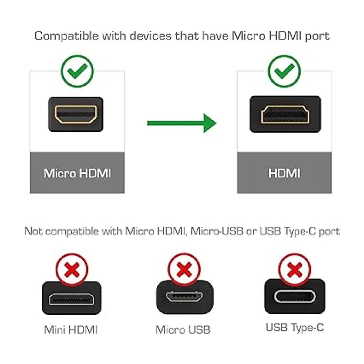 Los cables Micro HDMI de alta velocidad conectan una tableta, cámara digital o cámara de video a un televisor Ultra 4K UHD TV, proyector o monitor con entrada HDMI. Compatible solo con dispositivos Micro HDMI
