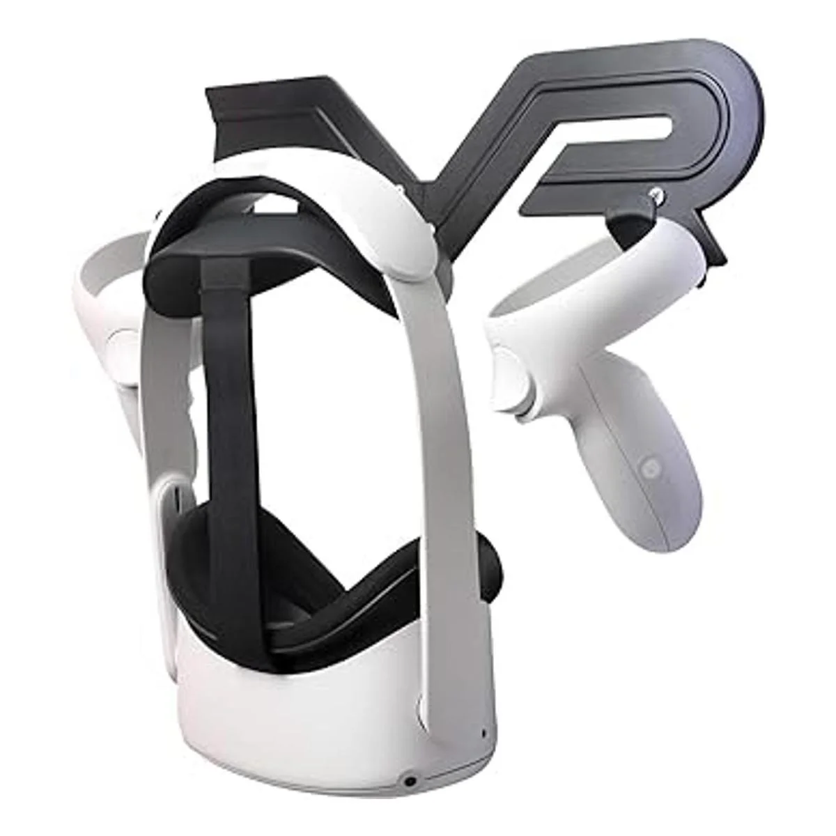 CNBEYOUNG Soporte de montaje en pared para auriculares VR compatible con MetaOculus Quest 2, Quest, Rift S, HP Reverb G2, HTC Vive, Vive Pro, índice de válvula, PSVR 2, MR auriculares y controladores negro