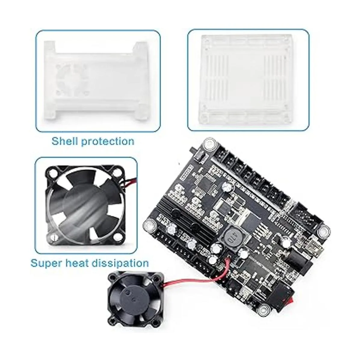 Placa de control GRBL1.1 mejorada: la carcasa exterior, puerto de botón de parada de emergencia, puerto de ajuste de herramienta sonda, puerto de límite de eje X/Y/Z y añade el interruptor de botón de encendido, y viene con el puerto de ventilador para forzar la disipación del calor, con accionamiento de eje mejorado, puede soportar un máximo de 2000 rpm, y también puede soportar módulo de 0.5 W20 W. Eje y acero. Motor Por: 77. Motor de 5 ejes 1236 V 24 V: 10000 r/min; Boquilla: ER11 0.125 in se puede equipar con 0.0000.276 in; motor paso a paso Nema17 42 1.3A/0.25 N.m