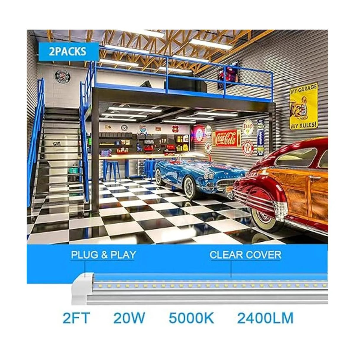 CNSUNWAY LIGHTING Luz LED de 2 pies, 20 W 2400 LM, luz diurna T8 de 5000 K, forma de V, alto rendimiento, luces de tienda enlazables para habitación, garaje, taller, iluminación debajo del gabinete paquete de 2
