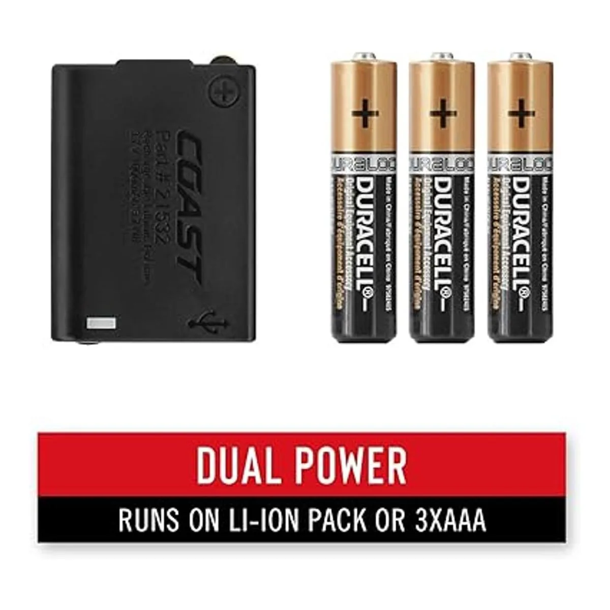 DUAL POWER RECHARGEABLE: Operates on rechargeable and alkaline batteries so youre never without power. Rechargeable batteries can be charged inside or outside of the headlamp with Flex Charge.