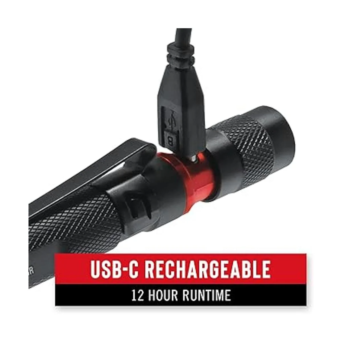 Accesorios incluidos: Linterna, clip de bolsillo ajustable, batería de litio recargable, 2 pilas alcalinas AAA, cable de carga USB, adaptador de CA y adaptador de CC
