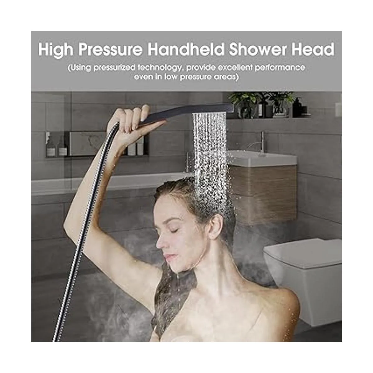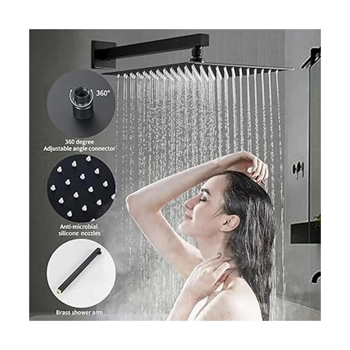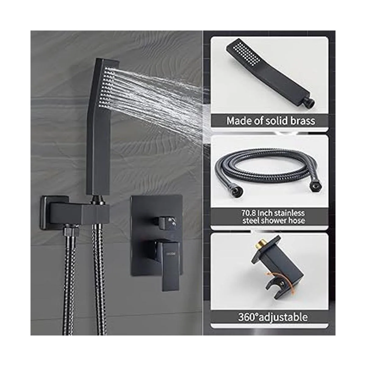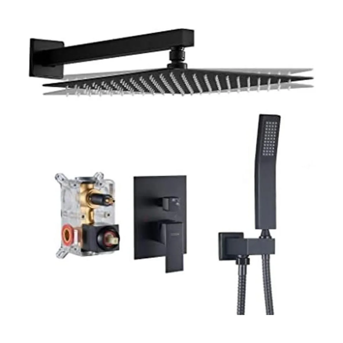 Lo que obtienes: accesorios de ducha de alta calidad, cuerpo de grifo de ducha de latón, brazo de ducha de 15.75 pulgadas, cabezal de ducha de lluvia de 12 pulgadas, cabezal de ducha de mano, manguera de ducha de 70 pulgadas, válvula de ducha y kit de molduras incluido.