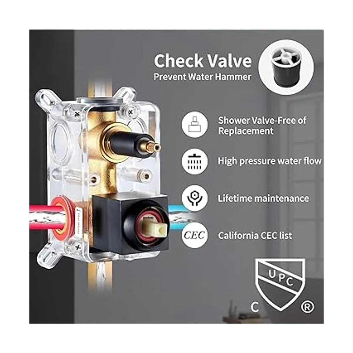 Válvula antiquemaduras certificada cUPC: este juego de grifo de ducha viene completamente con una válvula de equilibrio de presión, que ha pasado la certificación cUPC, que puede ajustar con precisión al volumen del agua y la temperatura que desees, y mantener la temperatura constante. Disponible en California