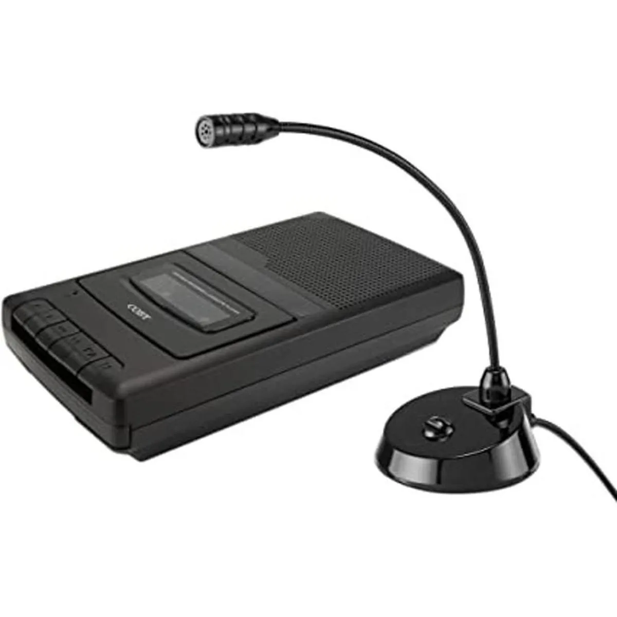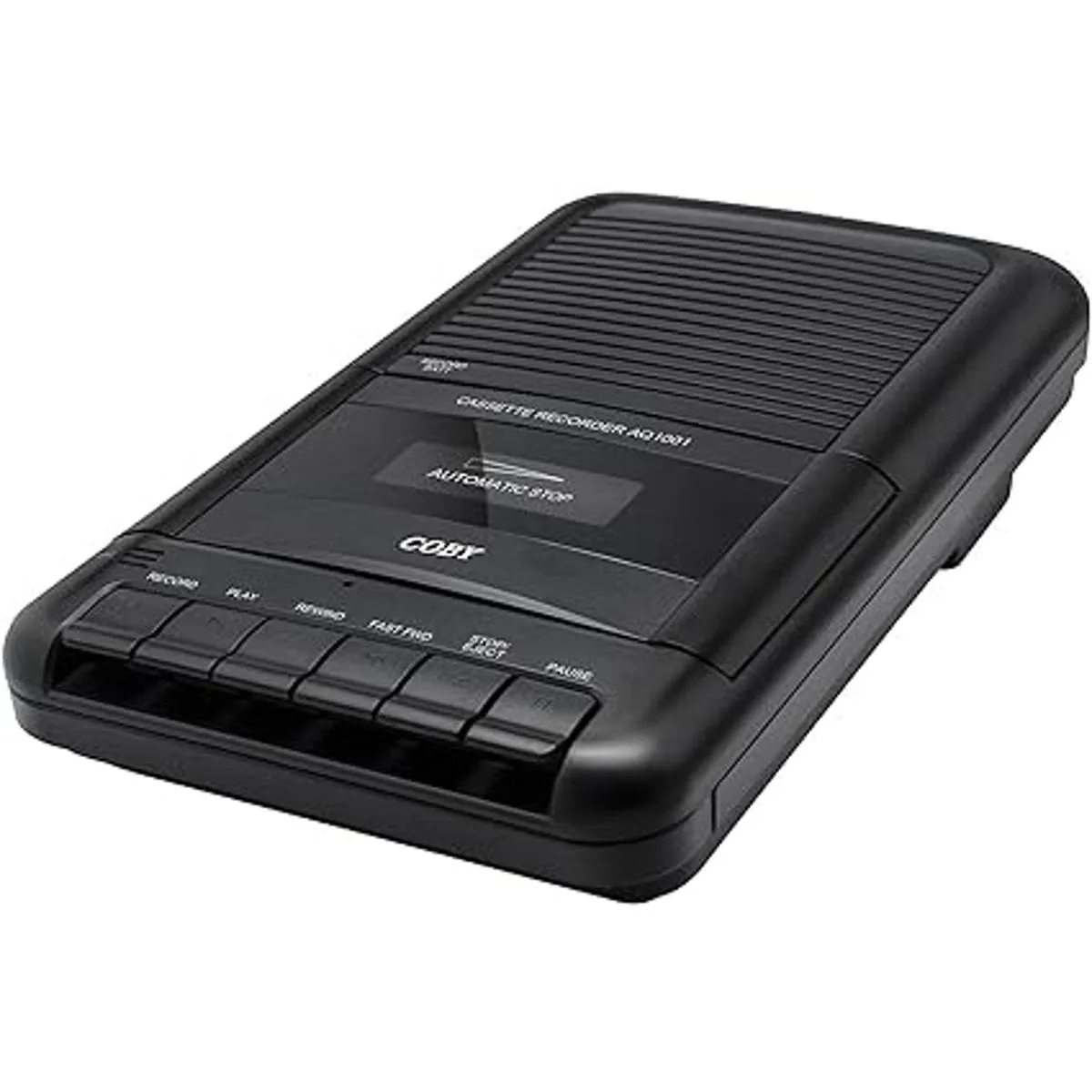 Coby Reproductor de casete portátil y grabadora de casete de cinta con micrófono integrado, mango integrado y grabación de un solo toque con parada automática, negro micrófono externo CVR42BK