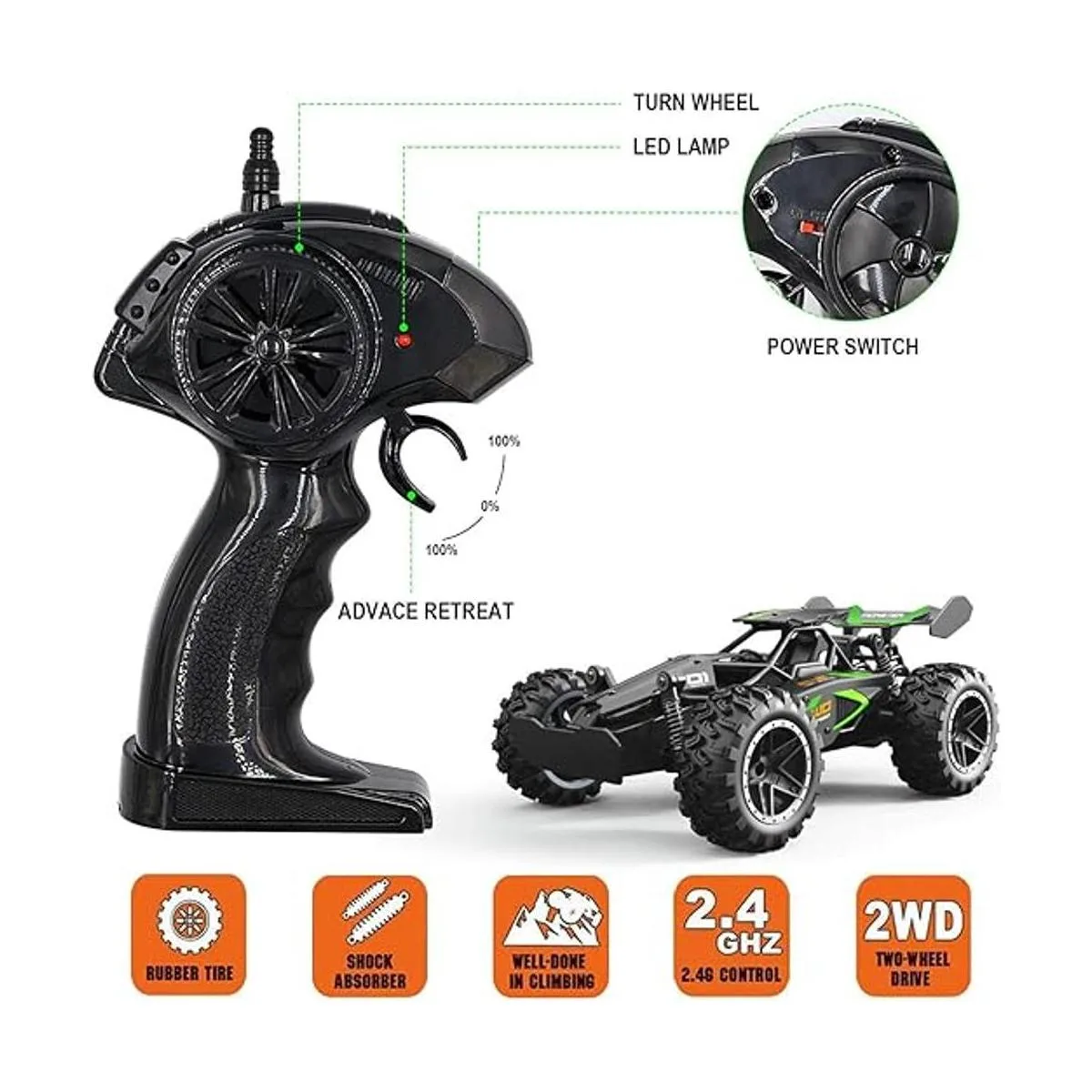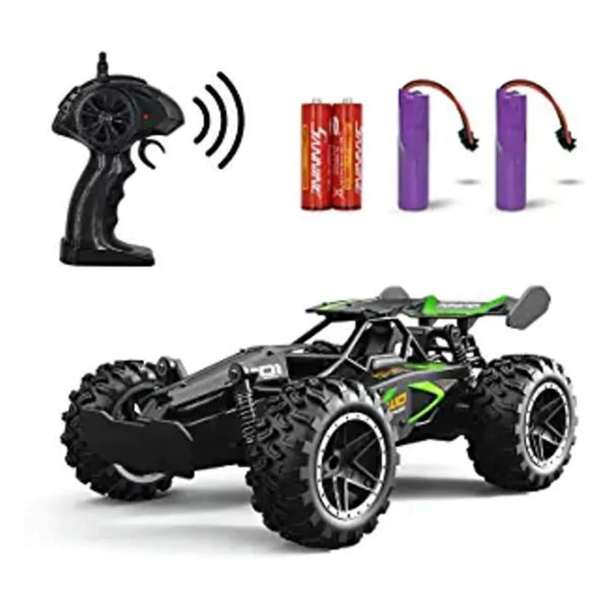 Coches a control remoto, 2.4 GHz, Monster RC Truck de alta velocidad, 118 2WD Toy Control remoto Cars para niños y niñas con dos baterías recargables negro verde