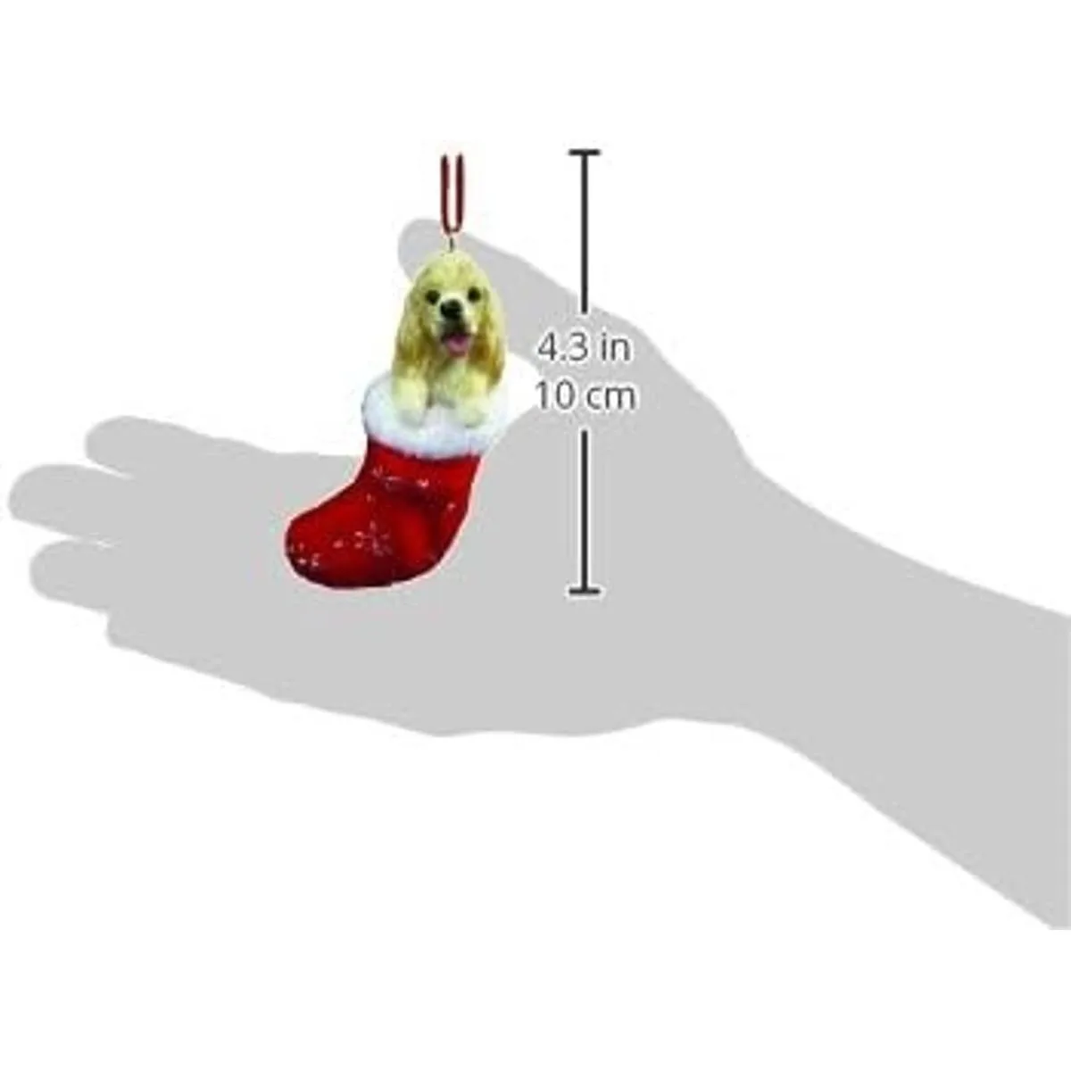 Cocker Spaniel Adorno navideño con diseño de Papá Noel pintado a mano y detalle cosido