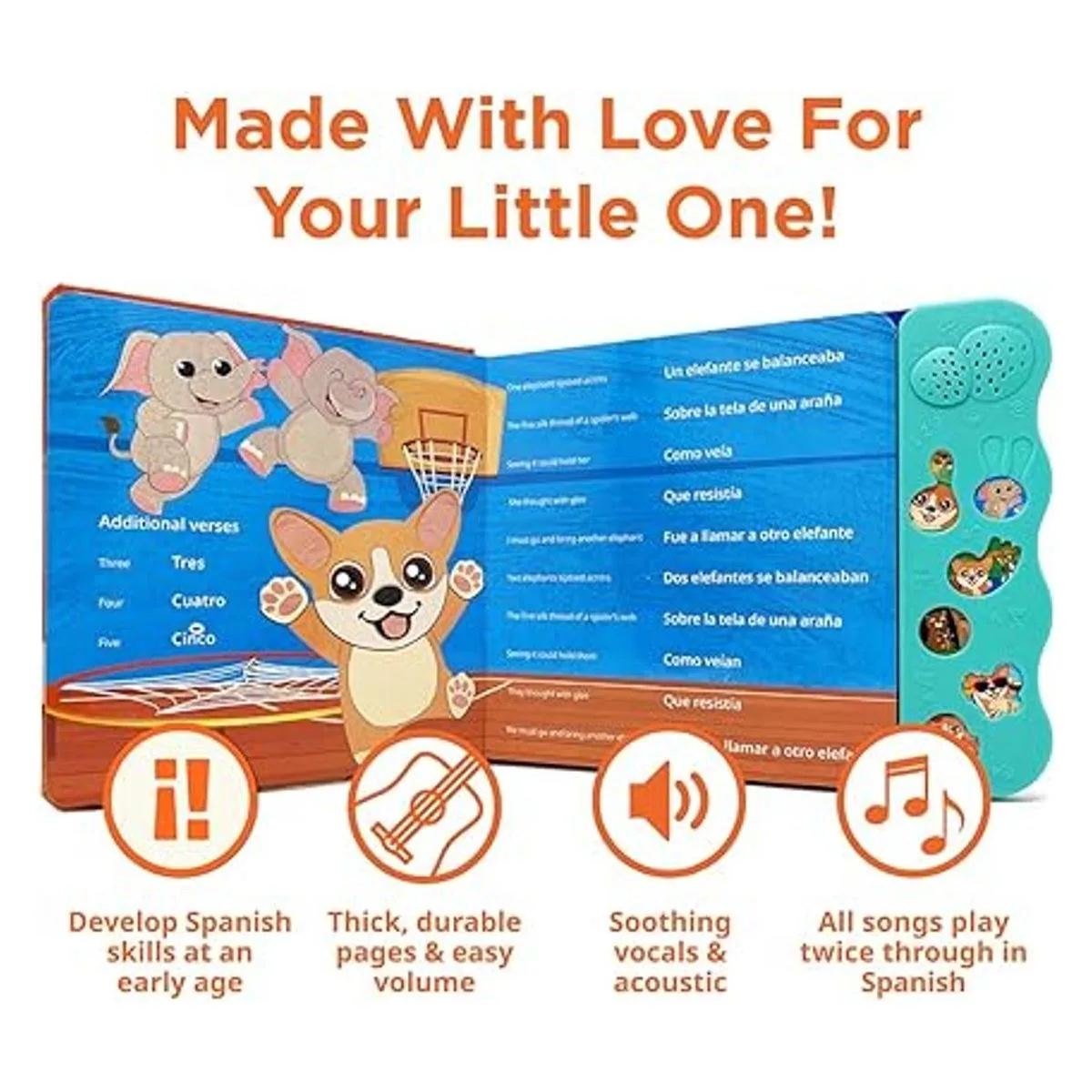 Canciones clásicas para niños. Nuestros libros españoles para bebés incluyen canciones clásicas infantiles españolas que reflejan la cultura española, perfectas para niños de cualquier edad. El volumen 2 incluye: Im A Little Teapot SOY UNA TETERA, A Balancing Elephant UN ELEFANTE SE BALANCEABA, If Youre Happy You Know It QUIEN EST FELIZ, Let It Rain QUE LLUEVA, Sun Little Sun SOL SOLECITO y You Are My Sunshine TU ERES MI SOL.