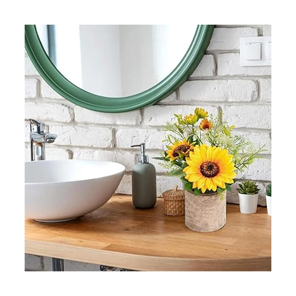 COCOBOO Maceta de flores artificiales de girasol, decoración de girasol, flor falsa amarilla en macetas, para el hogar, baño, cocina