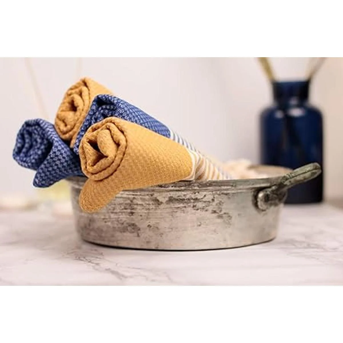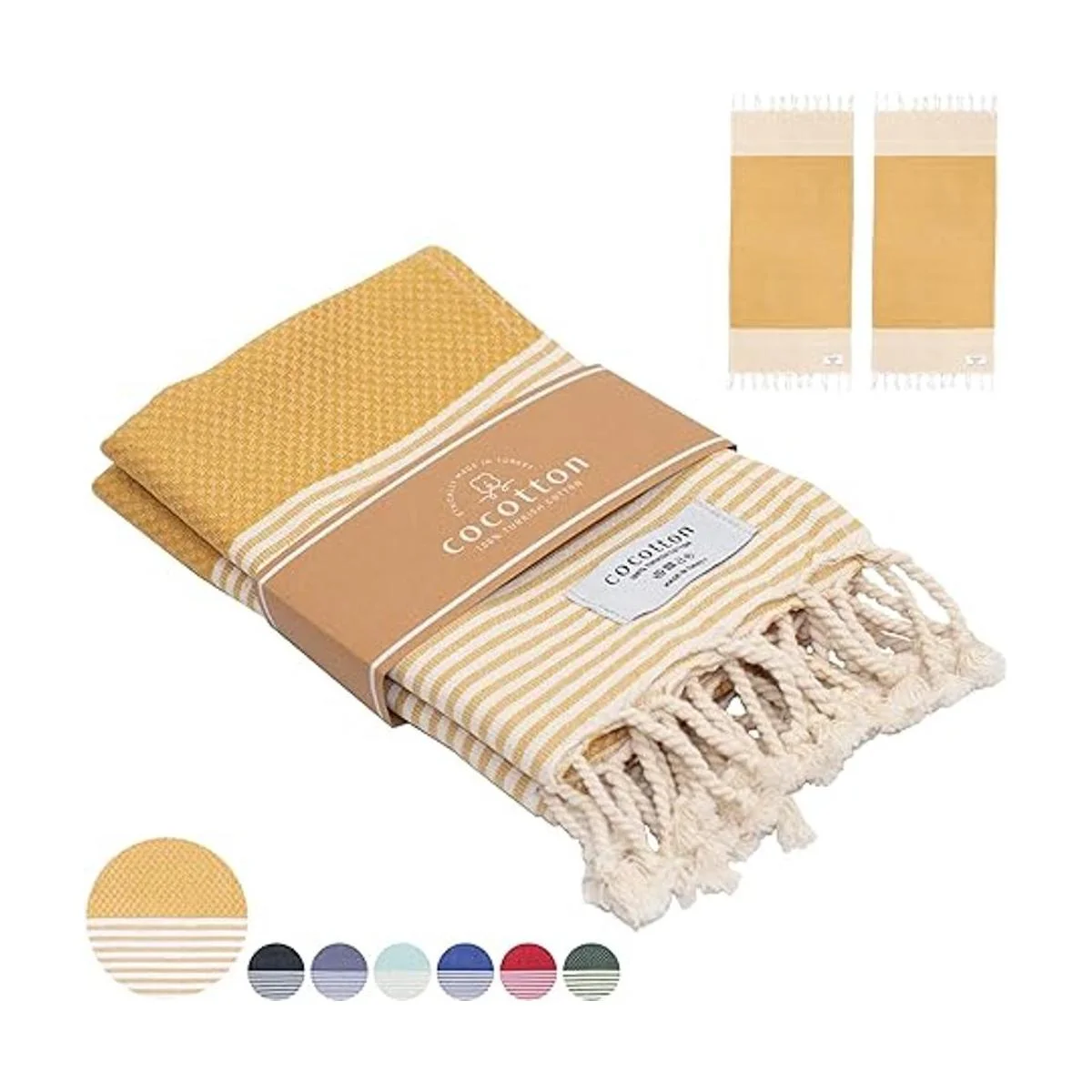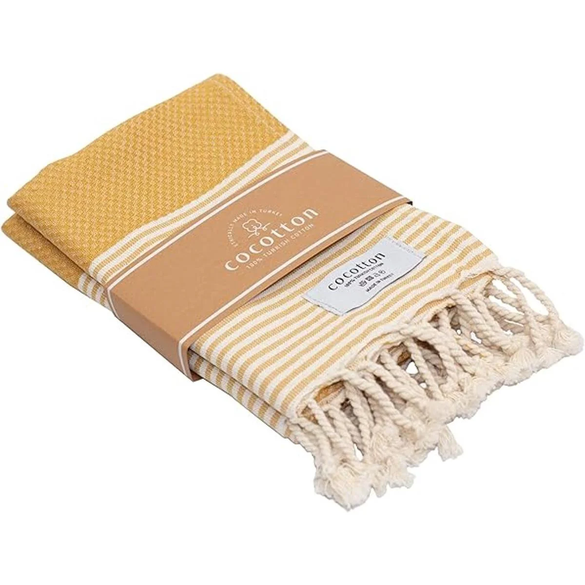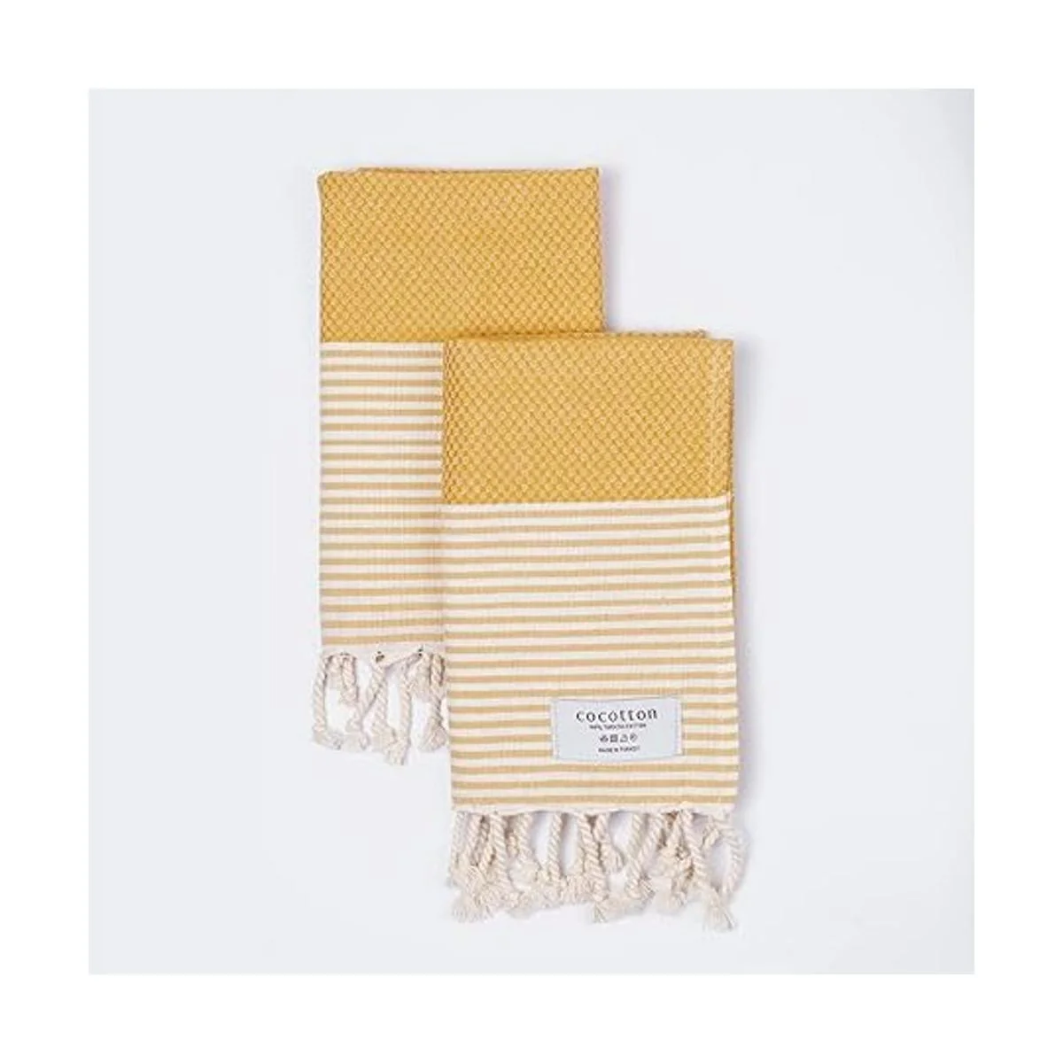 COCOTTON Juego de 2 toallas de mano turcas a rayas bohemias 100 algodón, 16 x 40 pulgadas Decoración para baño, cara, gimnasio, yoga, platos, té, cocina, toalla ligera de secado rápido mostaza