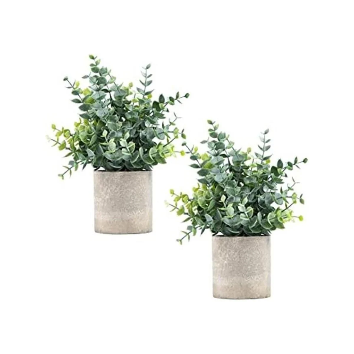 Coferset Paquete de 2 mini plantas artificiales de eucalipto en macetas, plantas pequeñas de casa para decoración de habitación en casa, oficina, escritorio Eucalyptus, 2