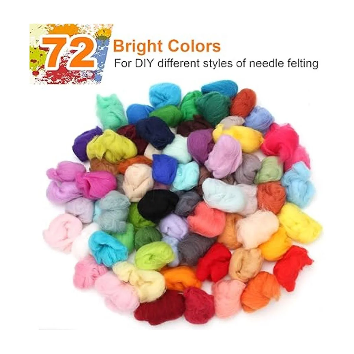Hilo de lana de 72 colores: incluye 72 colores diferentes, vibrantes y brillantes, puede satisfacer tus necesidades de bricolaje diferentes estilos de fieltro de aguja y fieltro húmedo, disfruta de la diversión de las manualidades de fieltro de aguja