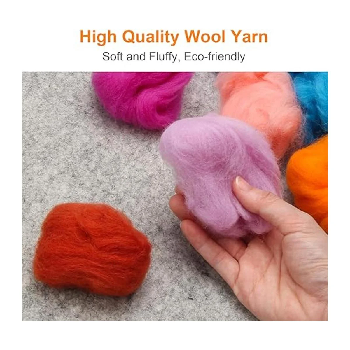 Material de alta calidad: nuestra lana de fieltro de aguja está hecha de lana de fibra de alta calidad, suave y esponjosa al tacto, gran surtido de lana para principiantes de fieltro de aguja.
