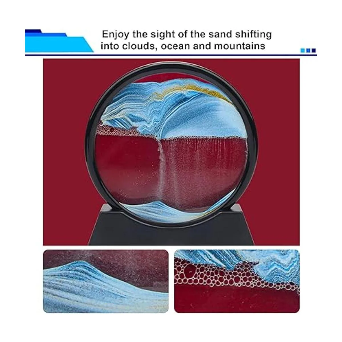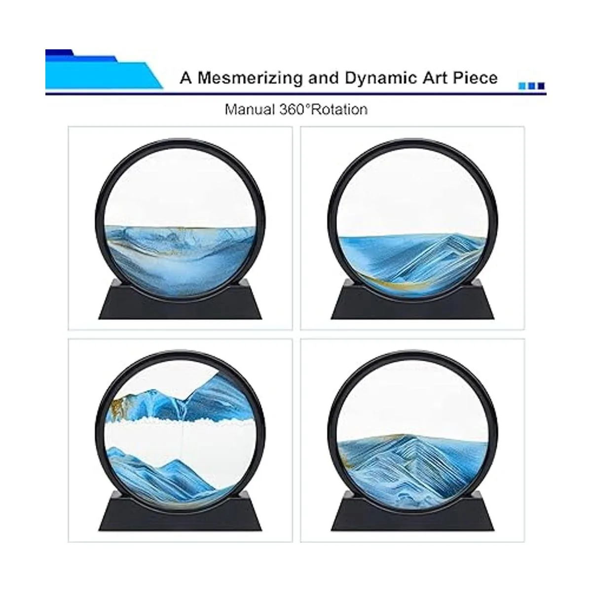 Diseño exquisito: la imagen de arena en movimiento es una pieza de arte fascinante y dinámica. Gira el vidrio y disfruta de la vista de la arena arremolinándose y cambiándose a nubes y paisajes, océanos y montañas de líneas y patrones intrincados.