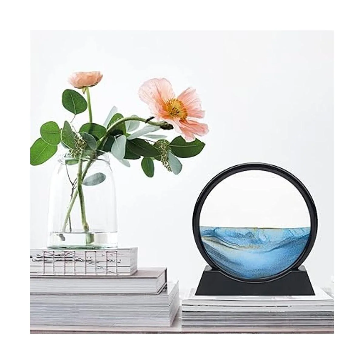 Coitak Imagen artística de arena en movimiento, imagen de arena dinámica de vidrio redondo, arte de arena de escritorio para decoración del hogar y oficina
