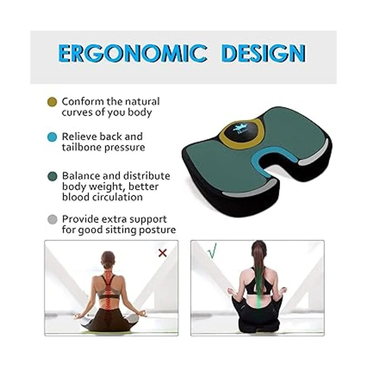 Cojín de asiento de espuma viscoelástica para silla de oficina, silla de ruedas, cojín de coxis para dolor de coxis, cojín de asiento de automóvil para dolor de espalda baja, cojín de silla de escritorio para almohada de ciática de glúteos, para sentarse firme pero apoyo