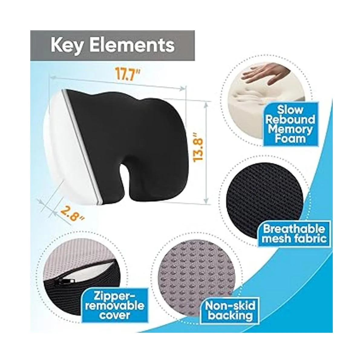 Cojín de asiento para silla de oficina almohadilla firme de espuma para descansar el coxis, ayuda si hay problemas de ciática, alivia el dolor de la espalda baja; corrector de postura contorneado para automóvil, silla de ruedas, computadora y silla de escritorio.