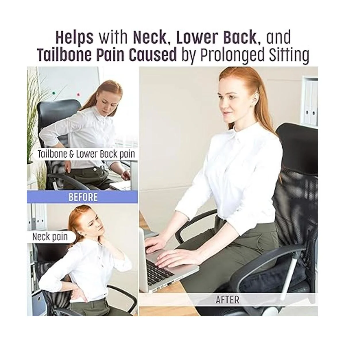 Este cojín de asiento se adapta a las curvas de la cadera y las piernas y su diseño especial reduce la presión en el coxis mientras estás sentado.