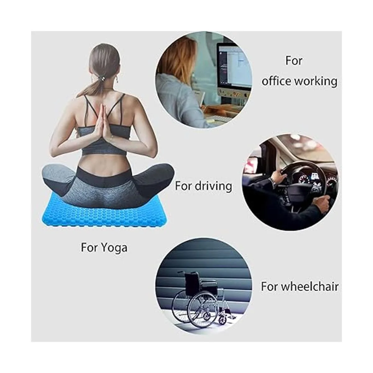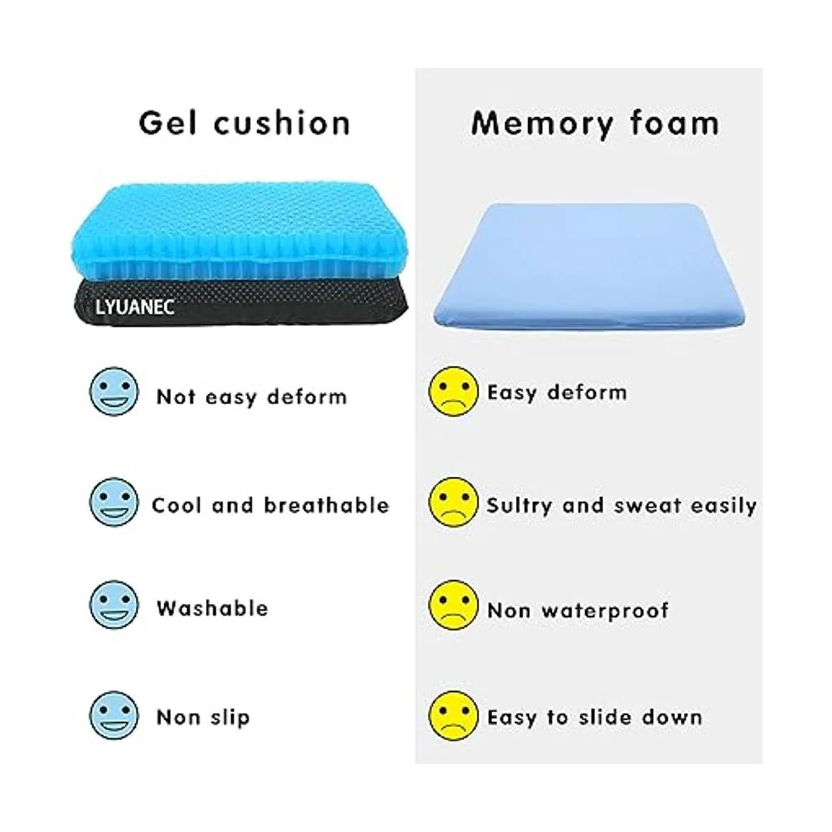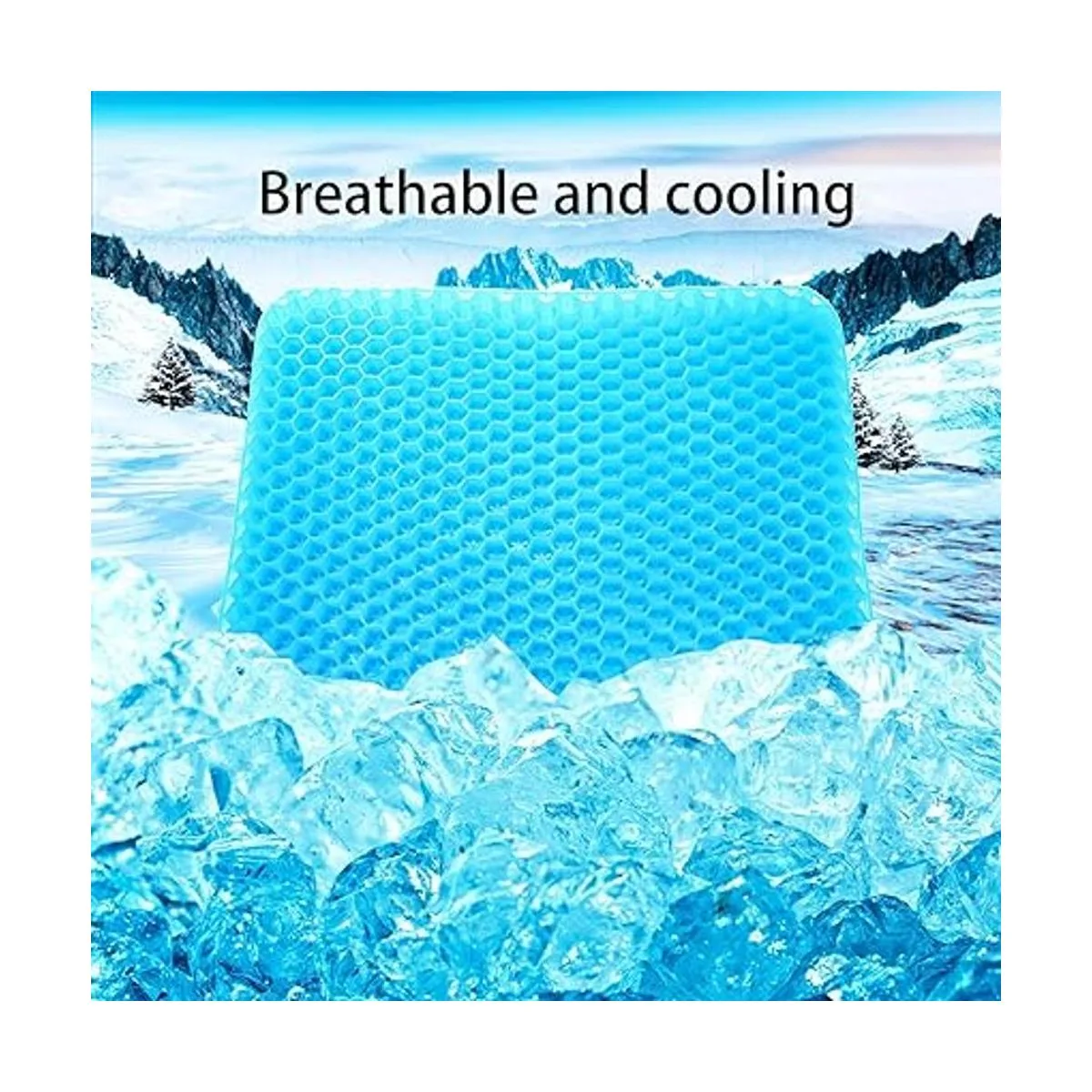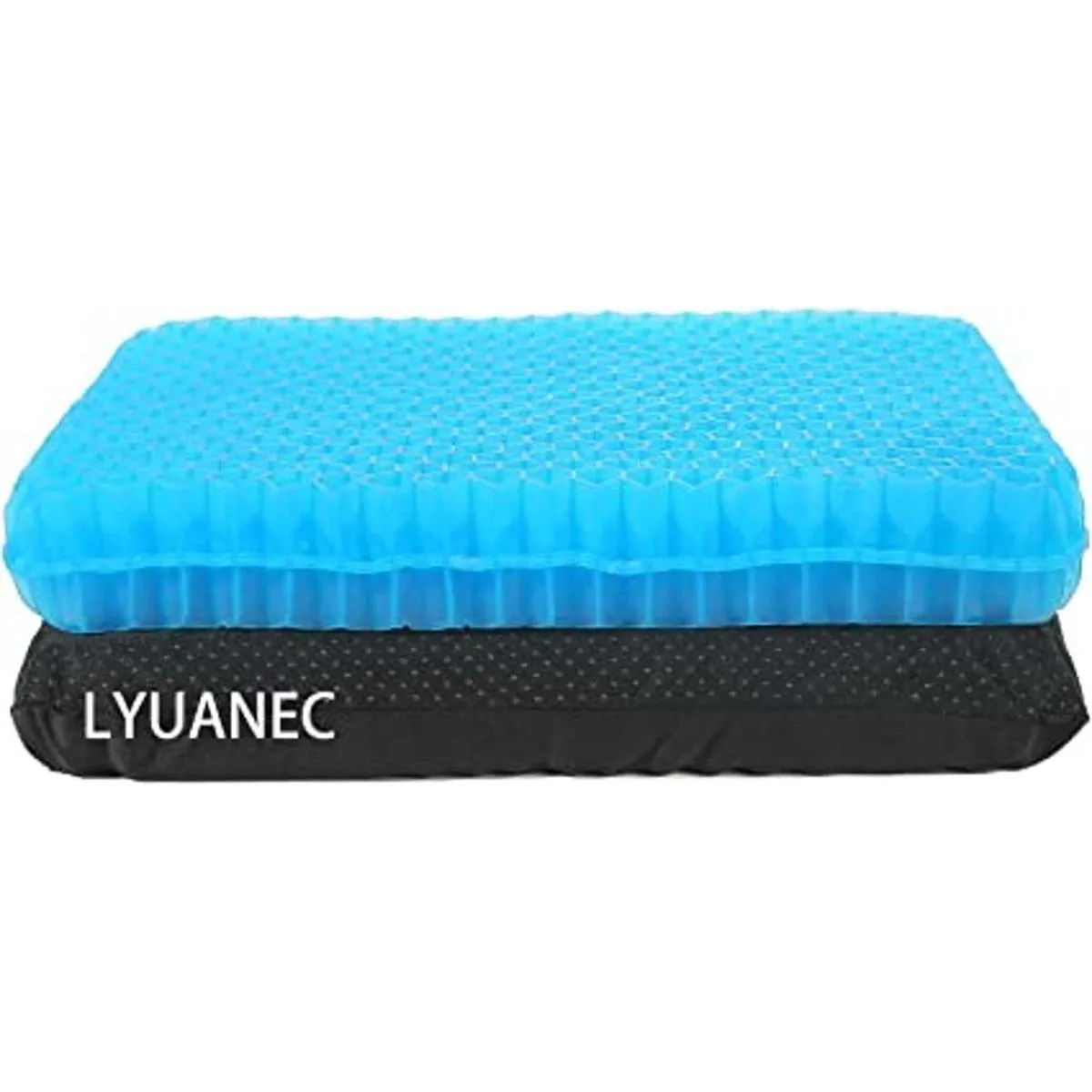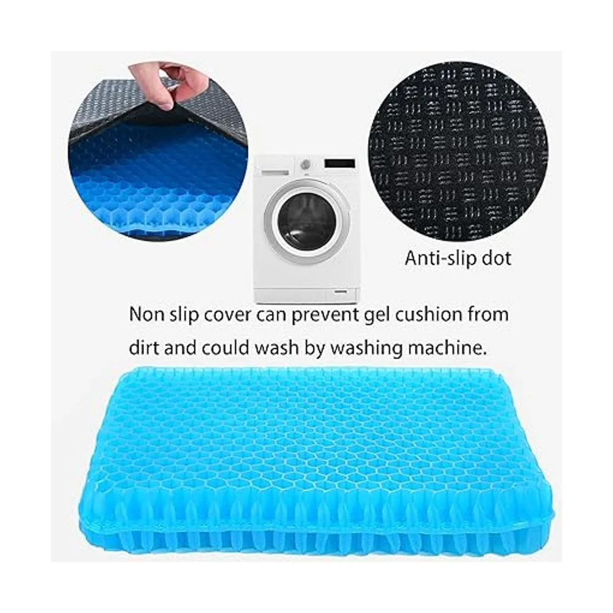 Cojín de gel para asiento de 2.4 pulgadas de grosor, doble capa gruesa, alivia la presión del coxis, cojín de gel transpirable con diseño de panal con funda antideslizante lavable para silla de oficina, asiento de automóvil, silla de ruedas azul