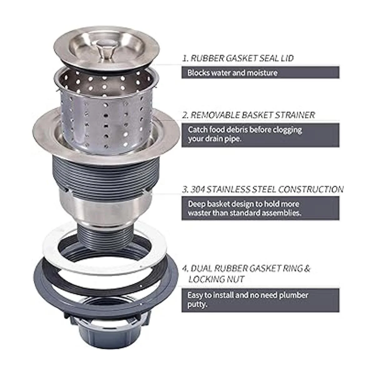 Se adapta a la apertura de drenaje de 3.5 adecuado para los fregaderos de cocina de la mayoría de familias americanas.