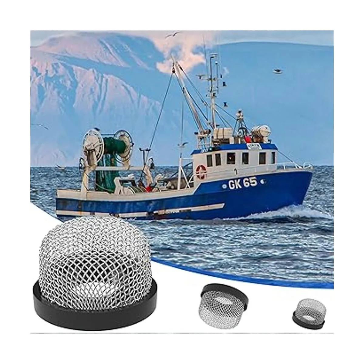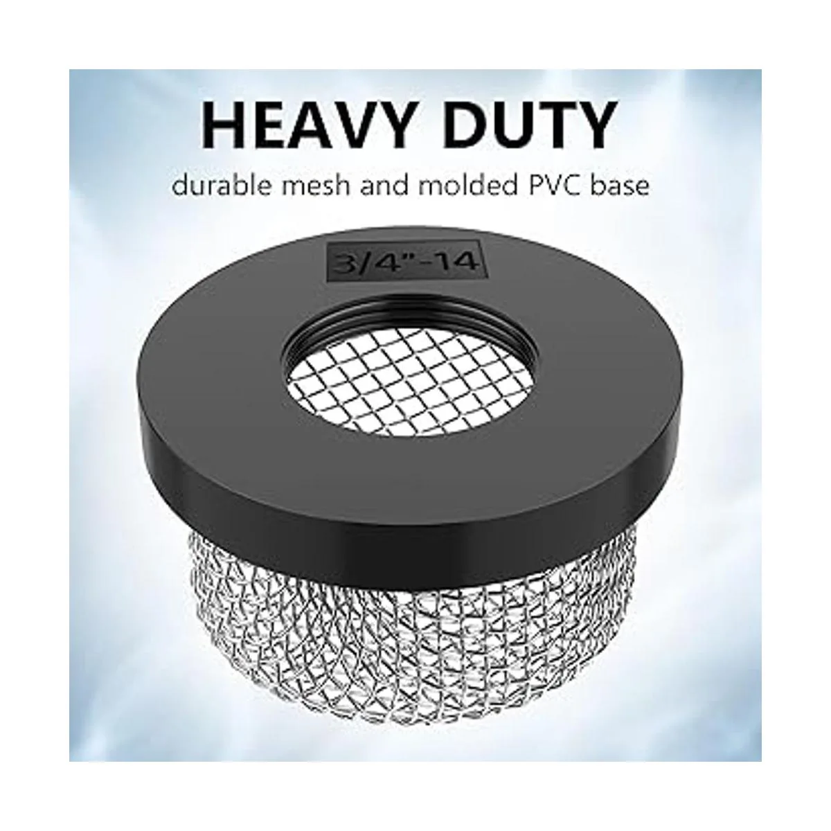 Compatible con la bomba Livewell: este colador de alambre atornillado está diseñado para evitar que los desechos obstruyan desages y bombas de aireador, compatible con cebo, que cuenta con malla de acero inoxidable moldeada en una base de PVC negro
