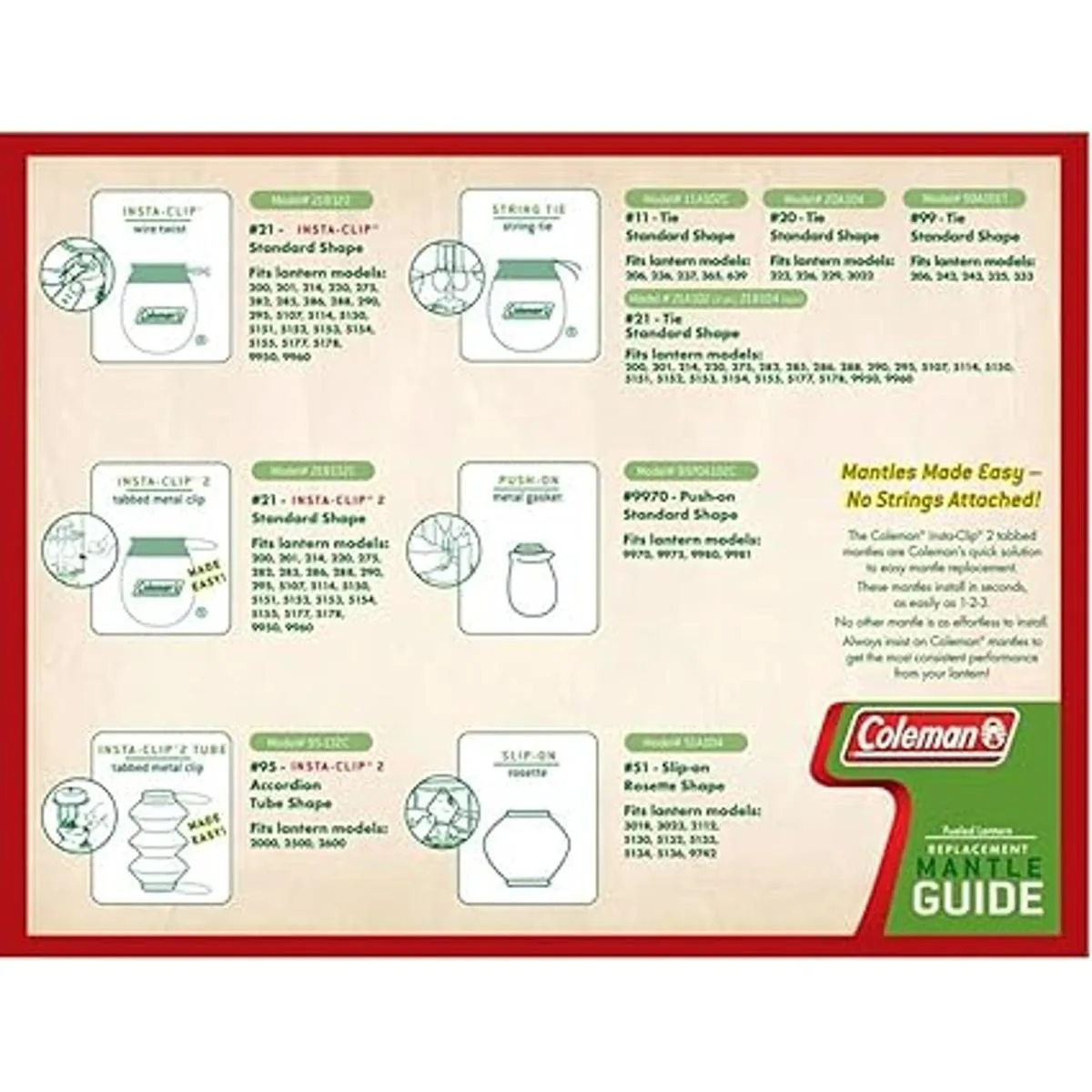 Coleman 95 InstaClip Accordion Shape Mantle 2 paquetes de 2 4 manteles totales