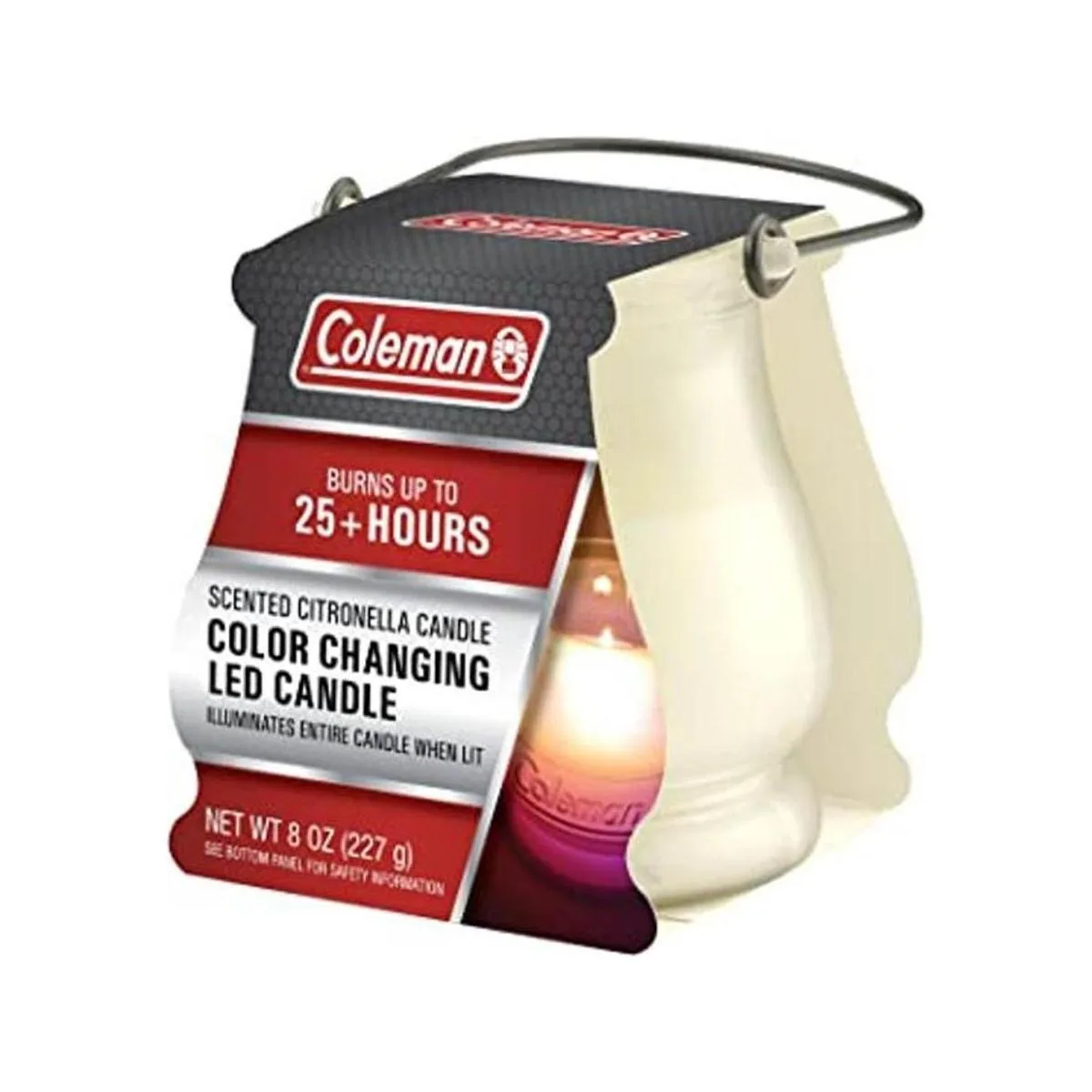 Una vela LED Coleman que cambia de color de 8 onzas, vela de citronela, vela al aire libre, dura hasta 25 horas