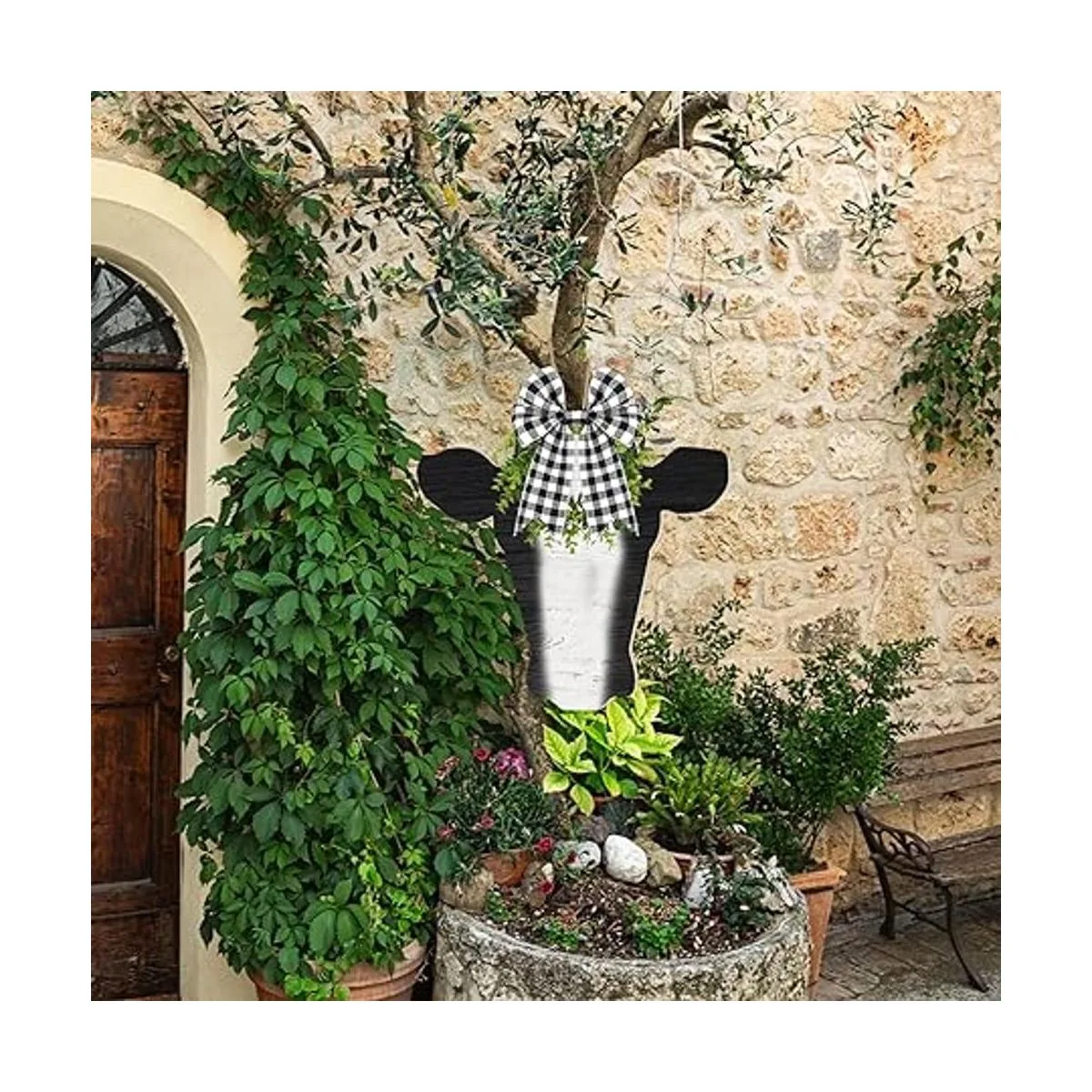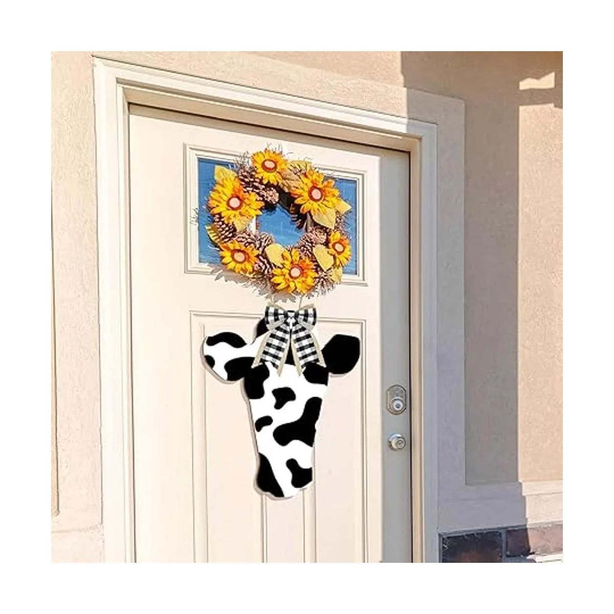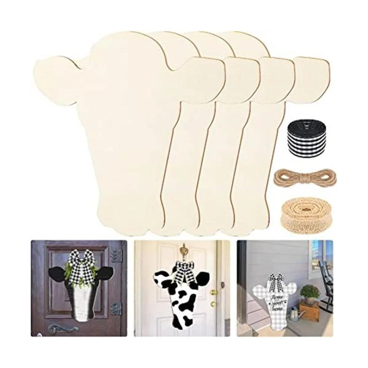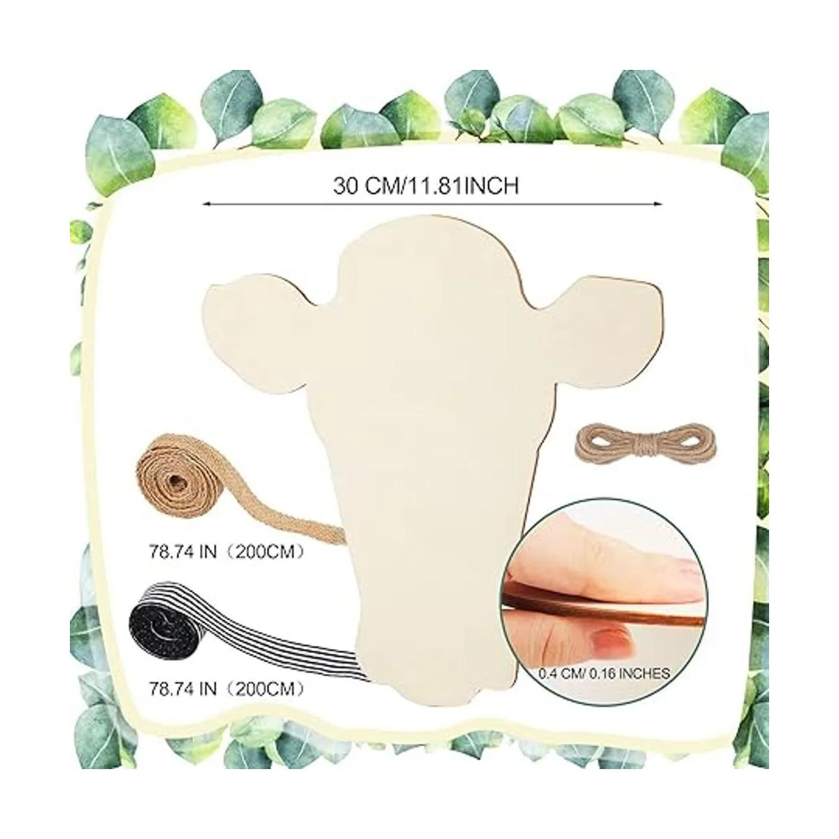 Colgador de puerta de madera de vaca sin terminar con recortes de madera de vaca de campo de granja, con cinta y cordel para manualidades, granja, gancho de puerta de 12 pulgadas