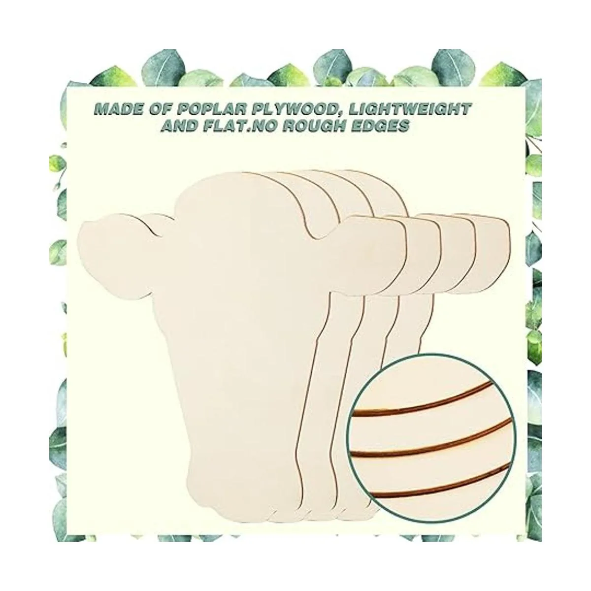 Ampliamente aplicable: la vaca de madera es decorativa pero práctica, se puede combinar con cintas para hacer manualidades delicadas, como decoraciones de boda, marcos de puertas, decoraciones del hogar y vacaciones, carteles y pinturas de bricolaje; puedes pintar o escribir en ambos lados, también adecuado para proyectos escolares, manualidades infantiles, etc