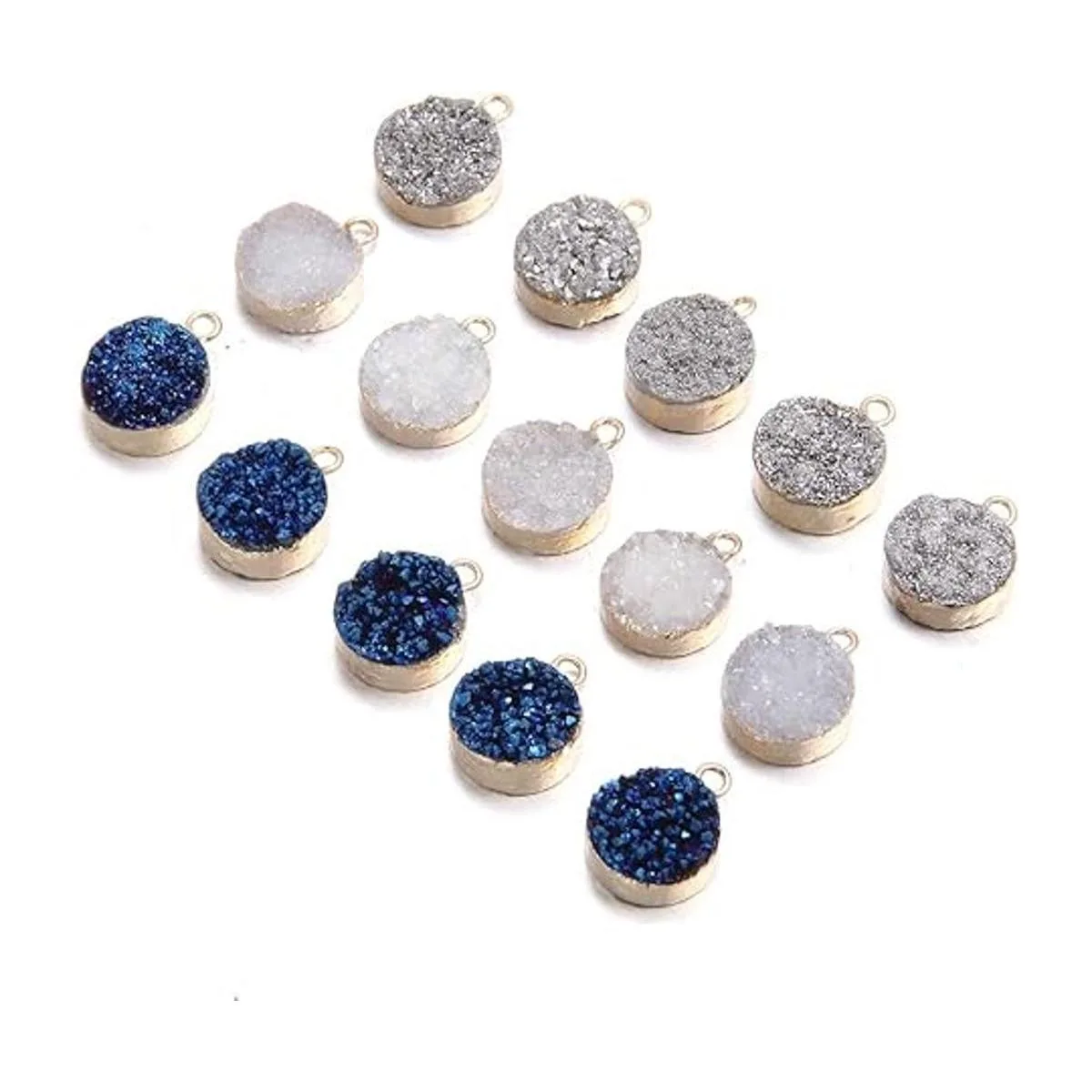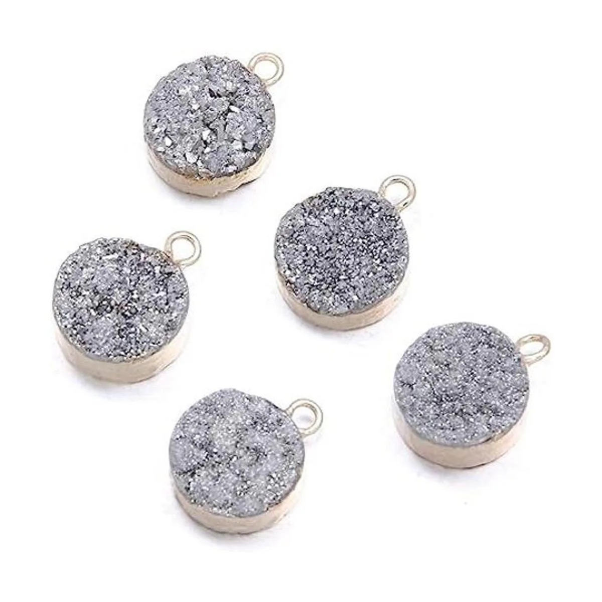 Colgante de cuarzo con geoda de ágata redonda natural de cristal Druzy DIY para hacer collares o joyas 5 piezas, Gris, 13MM