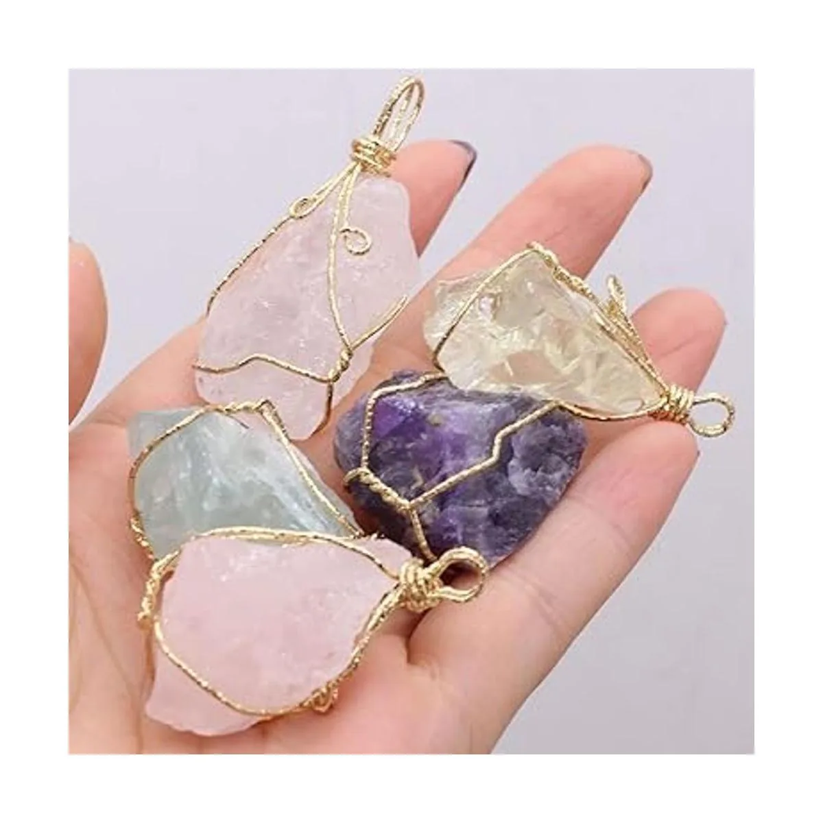 Material: cuarzo rosa, amatista, fluorita, piedra de cristal natural, colgante de gema artesanal, collar de abalorios, accesorios de joyería, fabricación de regalo, 0.984 x 1.772 in