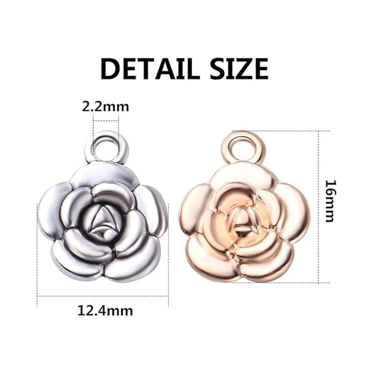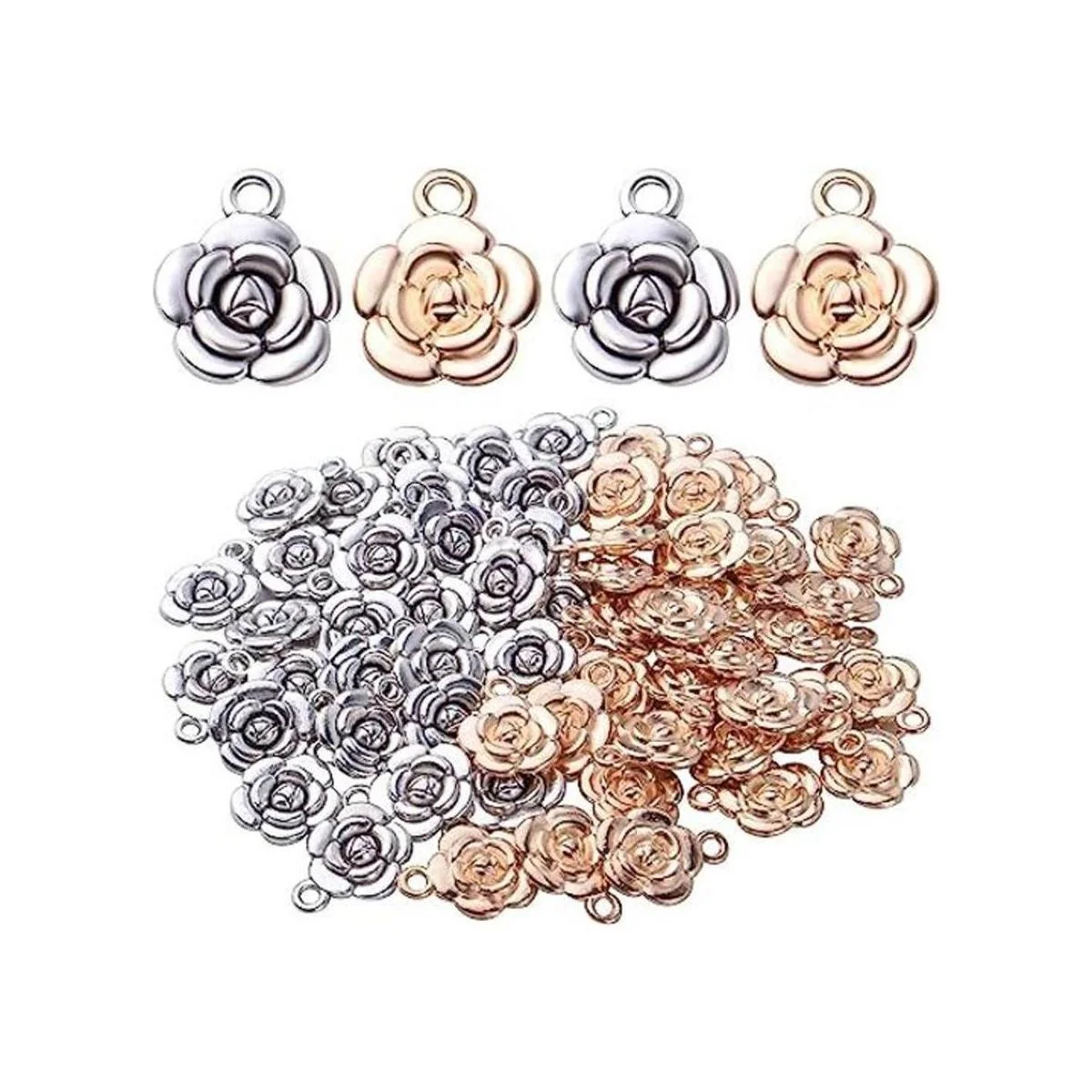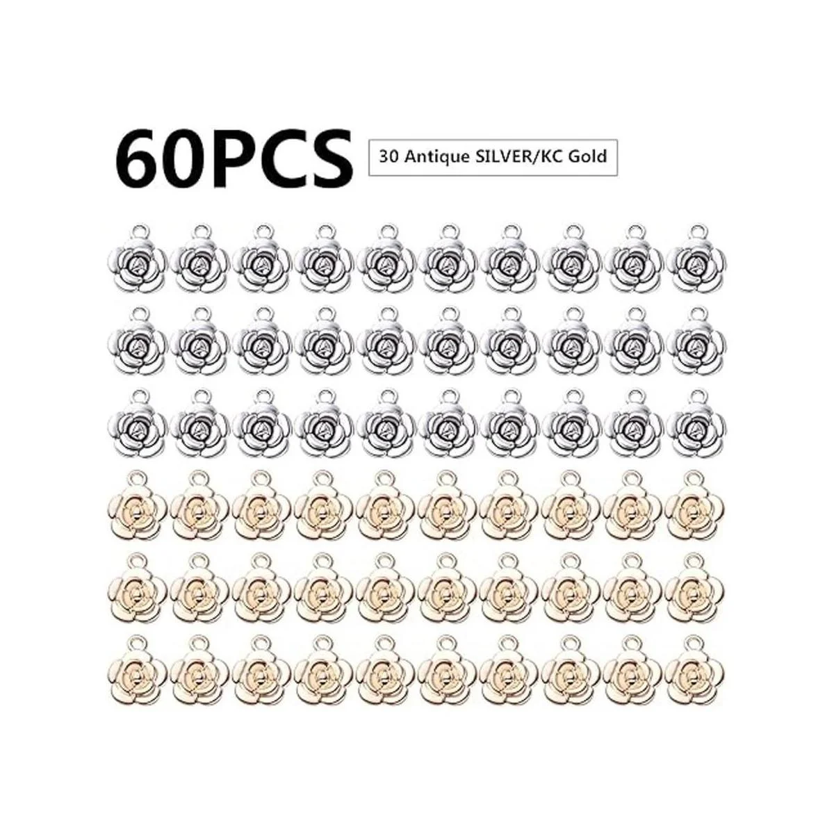 Colgante de rosas, 60 piezas de aleación de flores de rosa, abalorios de flores, suministros para joyería, collar, pendientes, pulsera, accesorio de fabricación de accesorios, plata antigua y oro