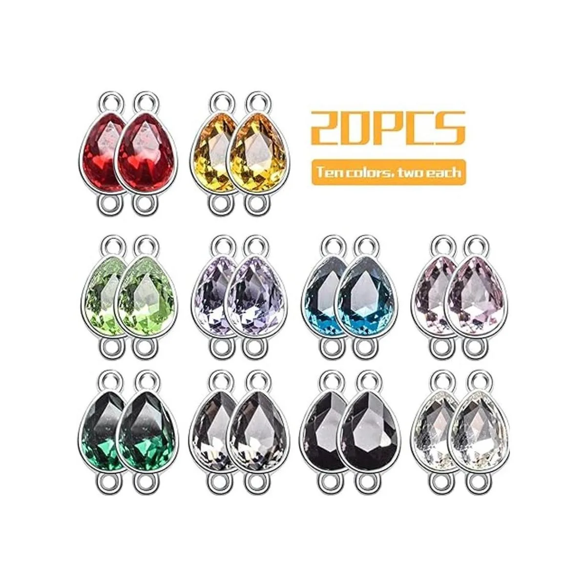 Colgantes de diamantes de imitación, 20 colgantes de aleación mezclados a granel con doble agujero para hacer collares, pulseras, joyas, 10 colores, 0.669 x 0.394 in