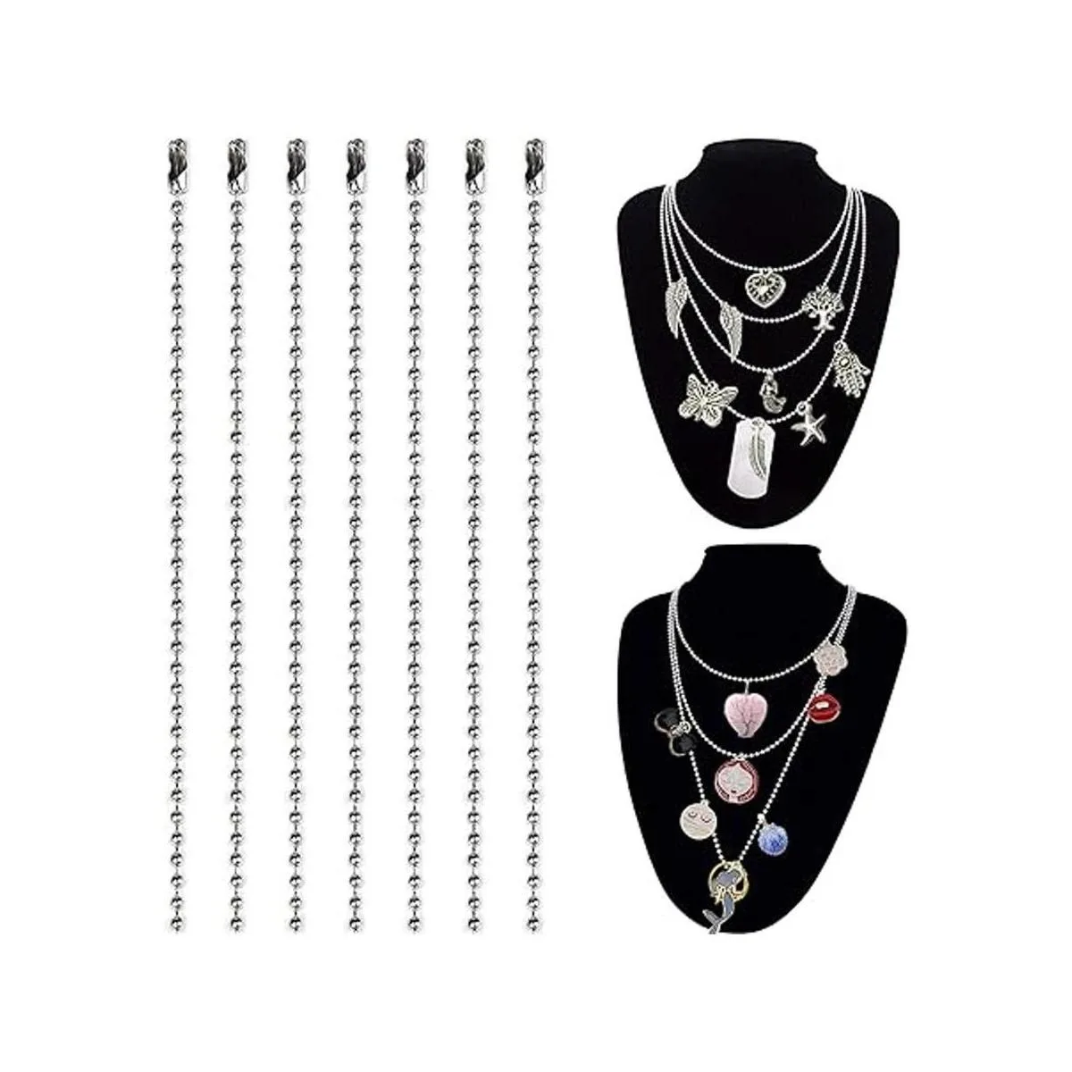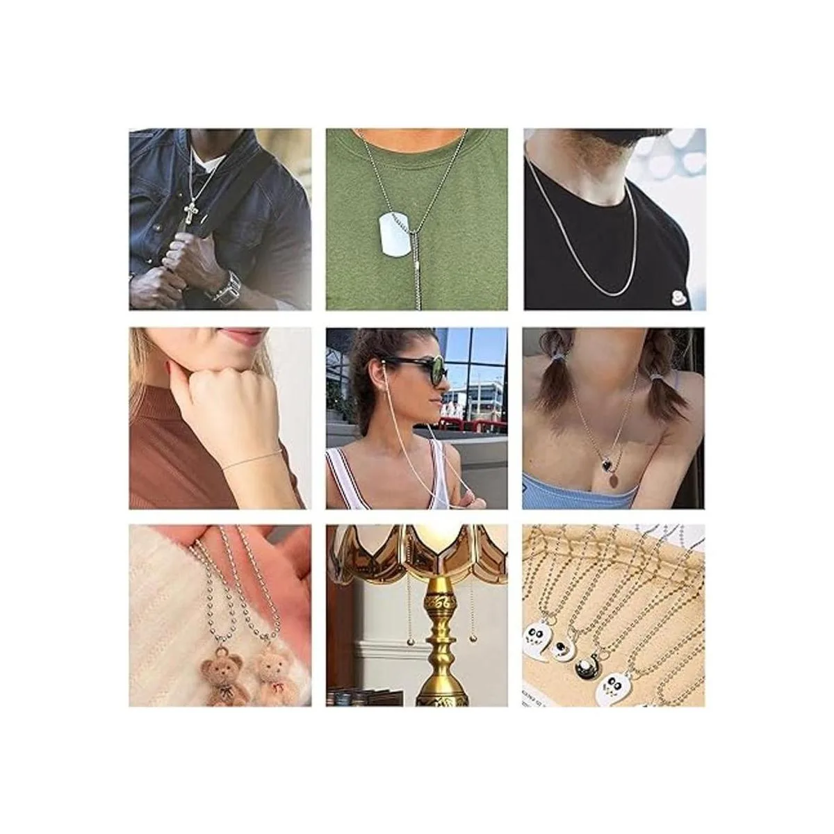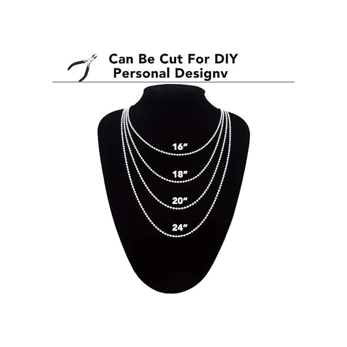 Collar cadena de bolas chapado en níquel KinHom 24 pulgadas de largo 2.4 milímetros, tamaño de bolas Nro. 3, cadena de acero con bolas de metal ajustable tipo antiguo a juego con conectores de accesorios de alhajas. 50 piezas.