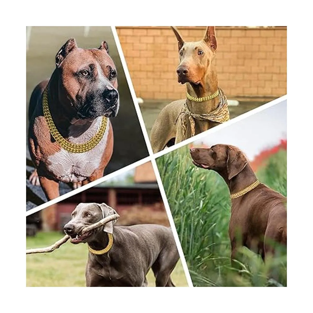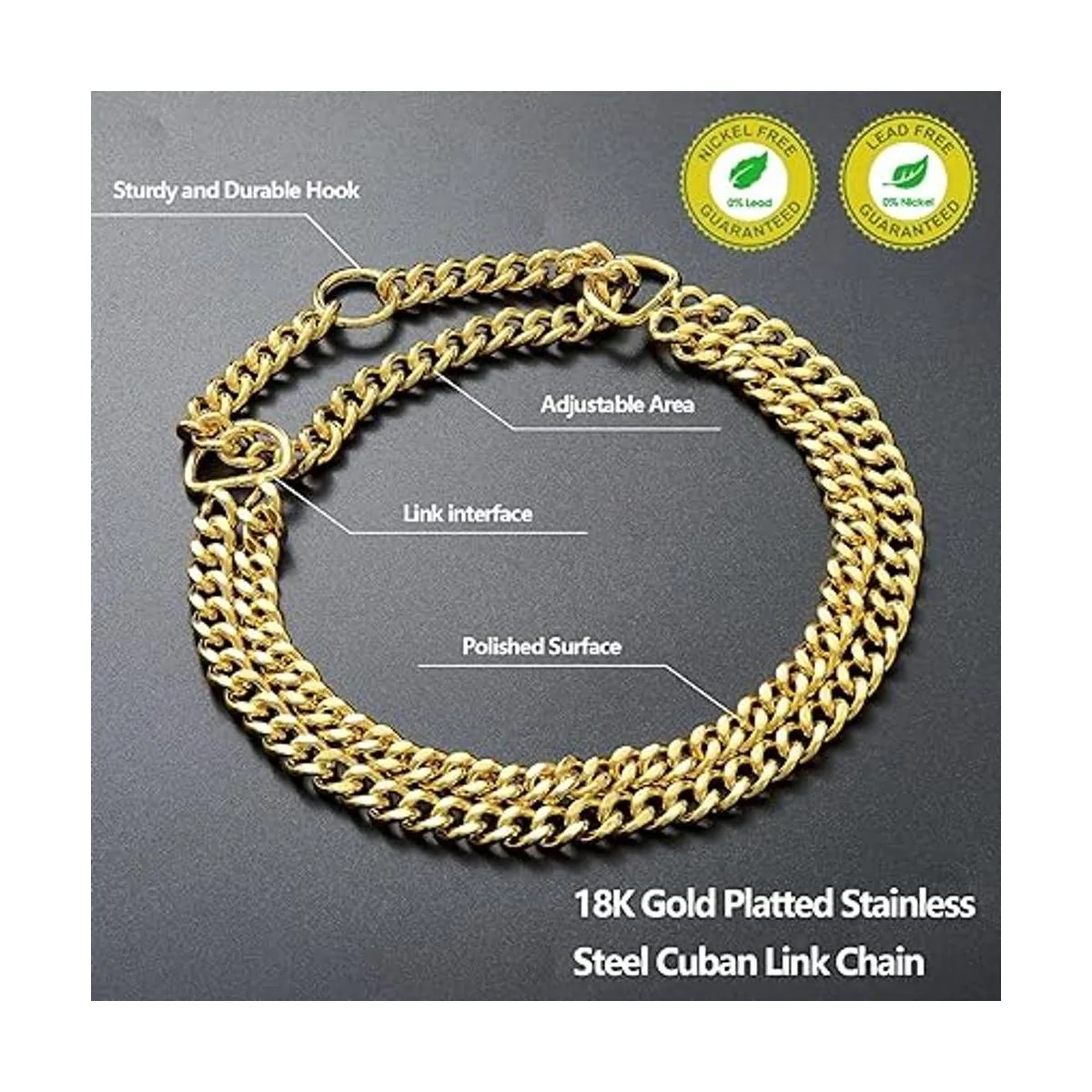 Collar de cadena de oro para perro, collar de perro de acero inoxidable de 18 quilates, ajustable para caminar, collar de perro de eslabones cubanos de metal, a prueba de mordidas, collar de doble fila para perros grandes, pequeños y medianos