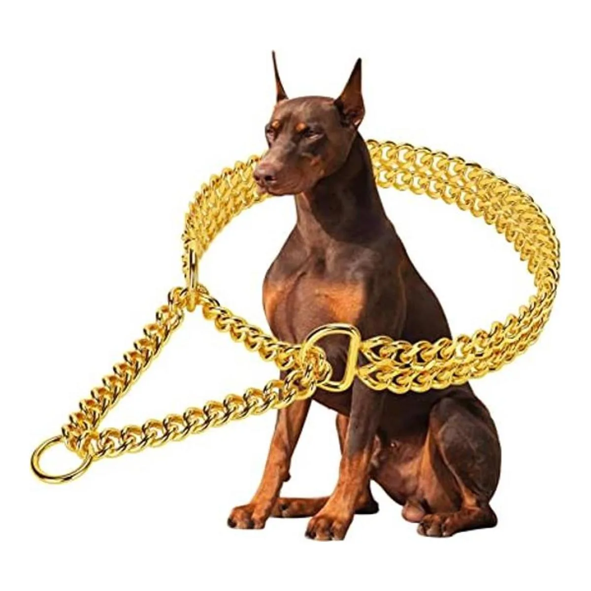 Cadena perfecta para collar de perro: la función de ajuste natural al tirar hace que este collar de perro de cadena de oro sea genial y funcional. Evita golpes violentos, es perfecto para actividades al aire libre de perros pequeños, medianos o grandes como caminar, correr o entrenar Recomendado para perros de 10 a 80 libras.