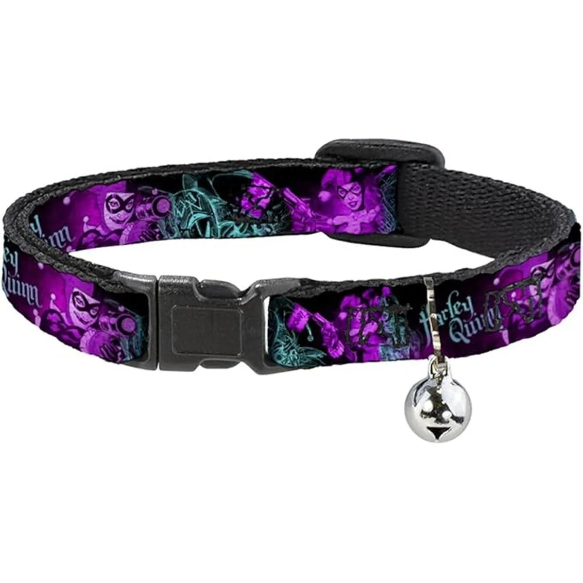 Collar de gato Breakaway Harley Quinn Pow Apuntar Poses Joker Negro Turquesa Fucsia 8 a 12 Pulgadas 0.5 Pulgadas De Ancho