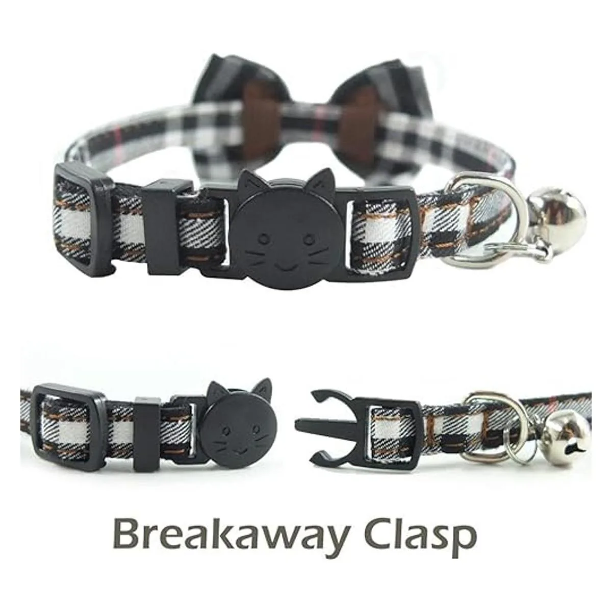 Collar de gato con campana y corbatín, diseño a cuadros, ajustable de seguridad para gatito 6.810.8 pulgadas
